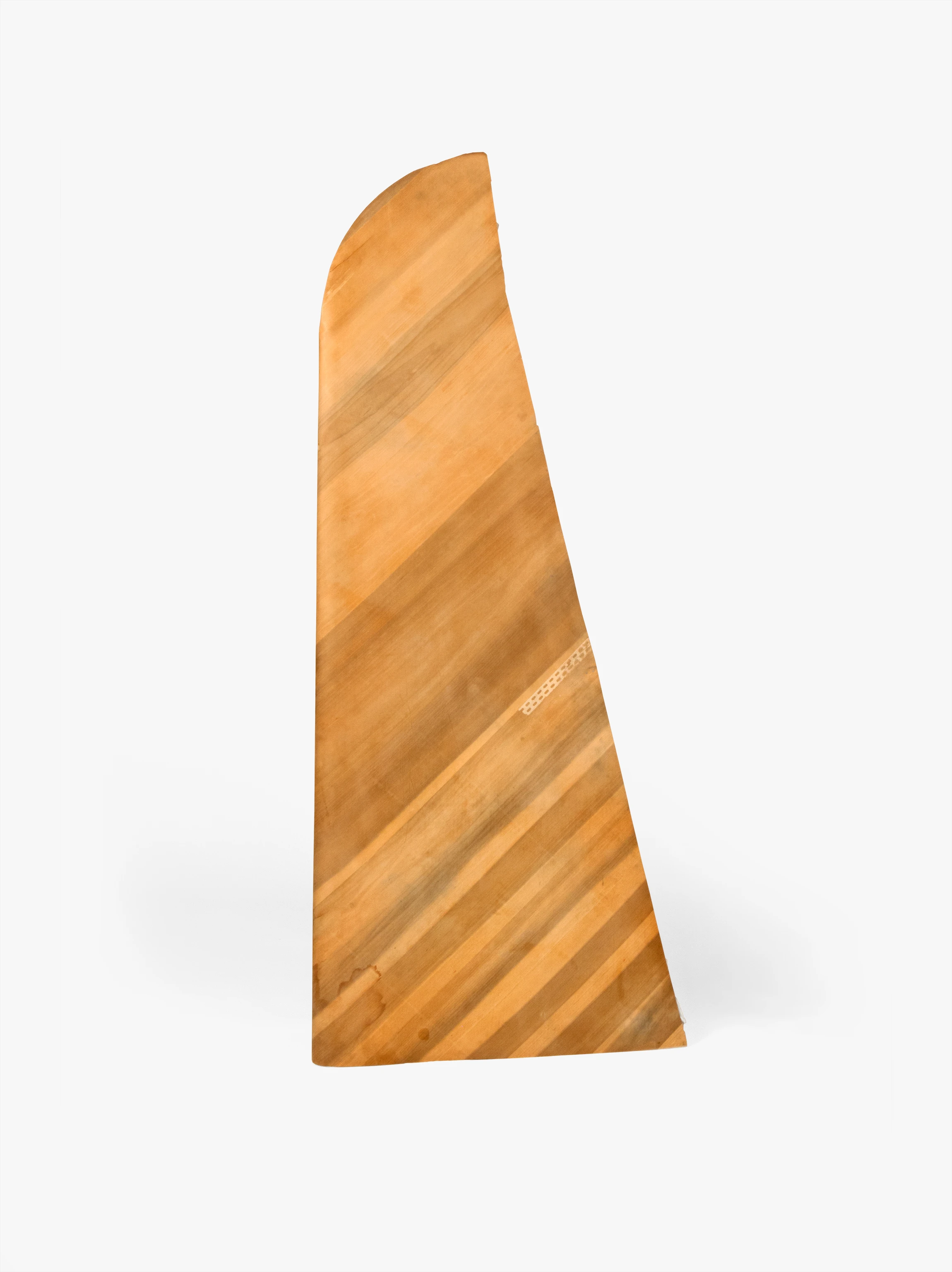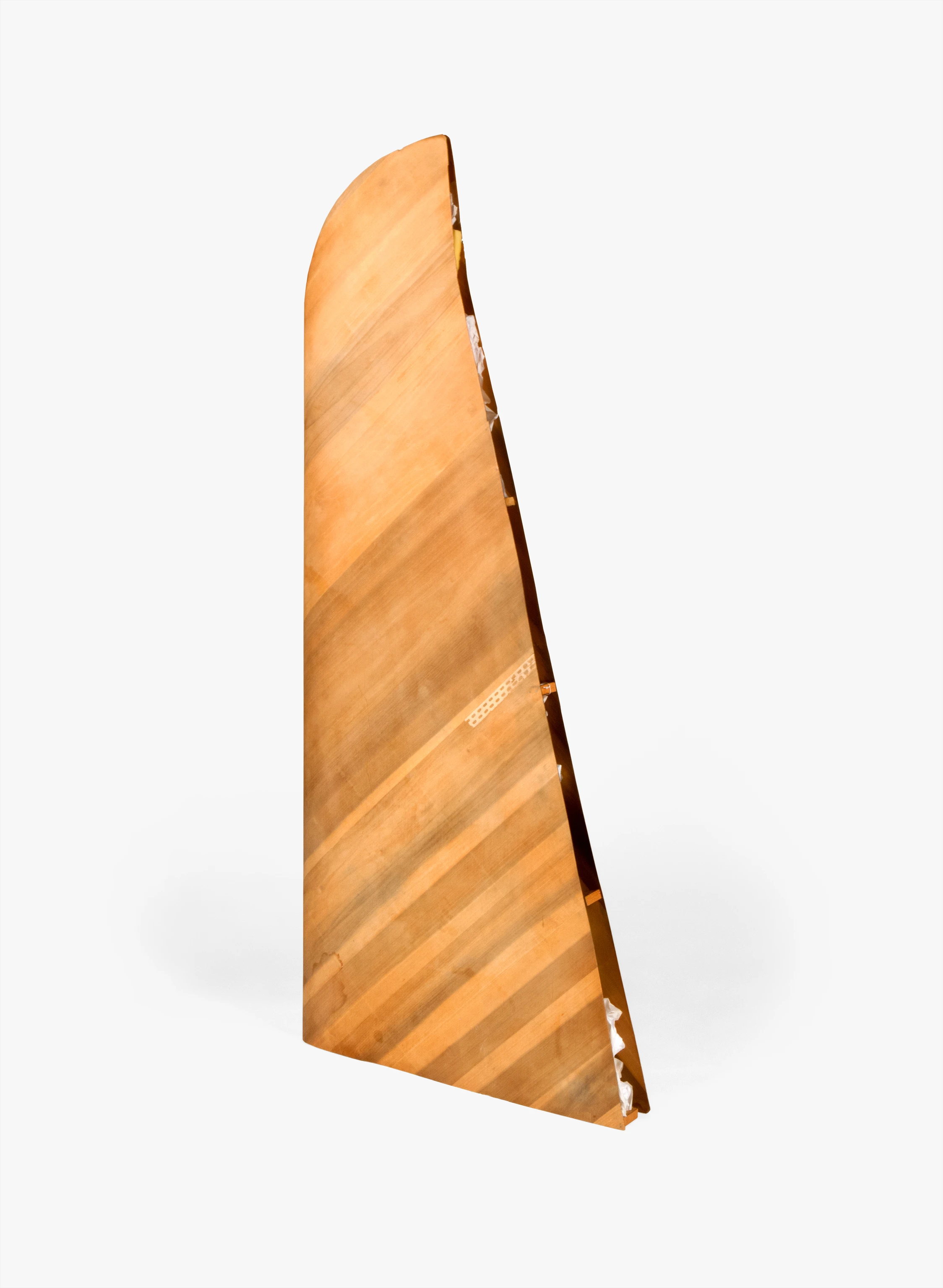 This Eames-designed skin for an airplane stabilizer was never realized, yet it shows the designers building their skill set with increasingly ambitious projects, in terms of both scale and structure. For the first time, they worked closely with factory technicians, arriving at designs that were appropriately streamlined for mass manufacture. Charles later pointed out that, while factories did not have an “art tradition,” they could produce aesthetically pleasing products through the efficiency of their process, which “submits to no compromise.” Charles and Ray’s experience participating in this collaborative and demanding process would come to be essential after the war when the designers returned to furniture making on a growing scale.