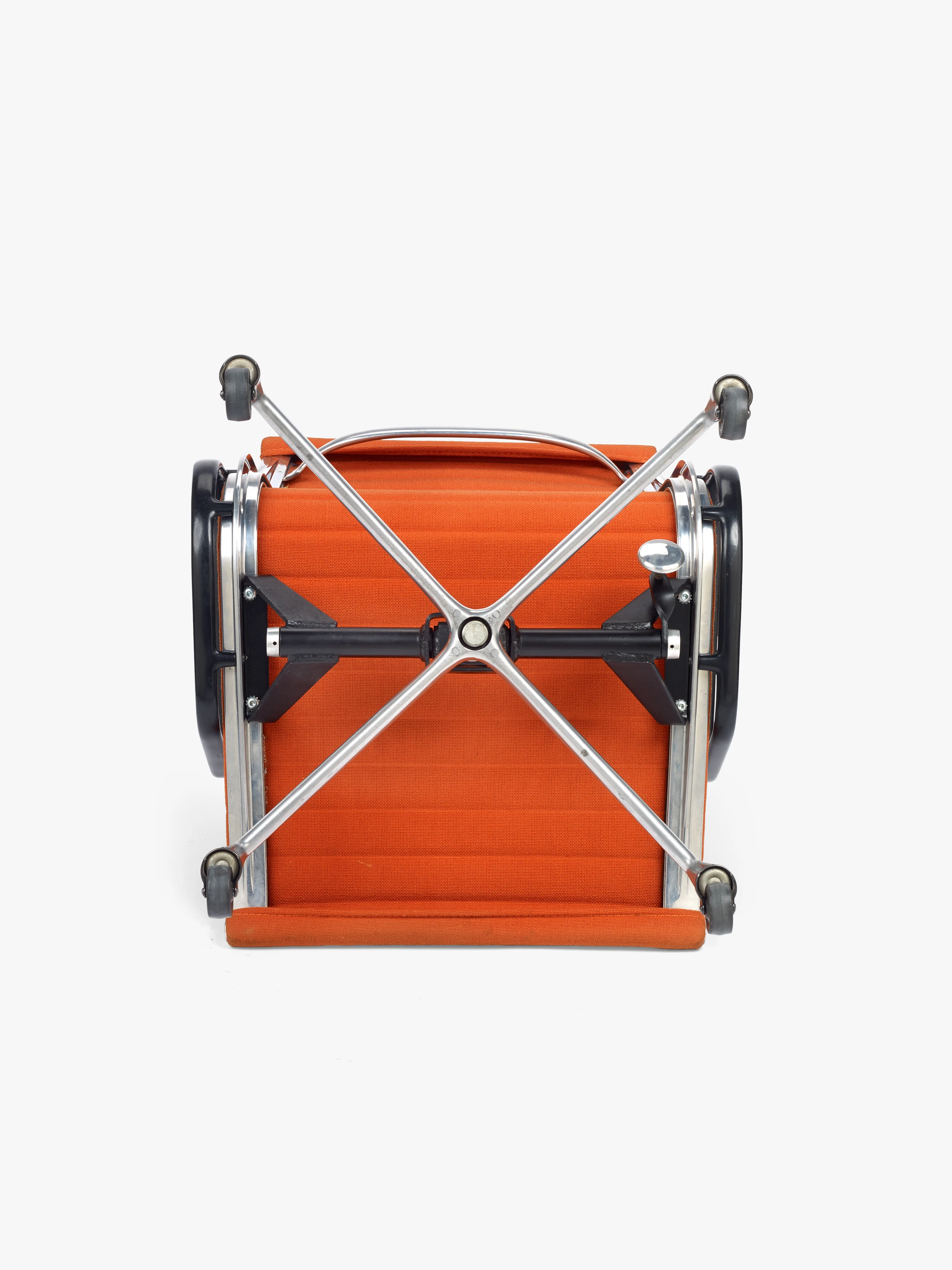 - Aluminum, Steel, Upholstery (“Hopsak” Orange #4411)