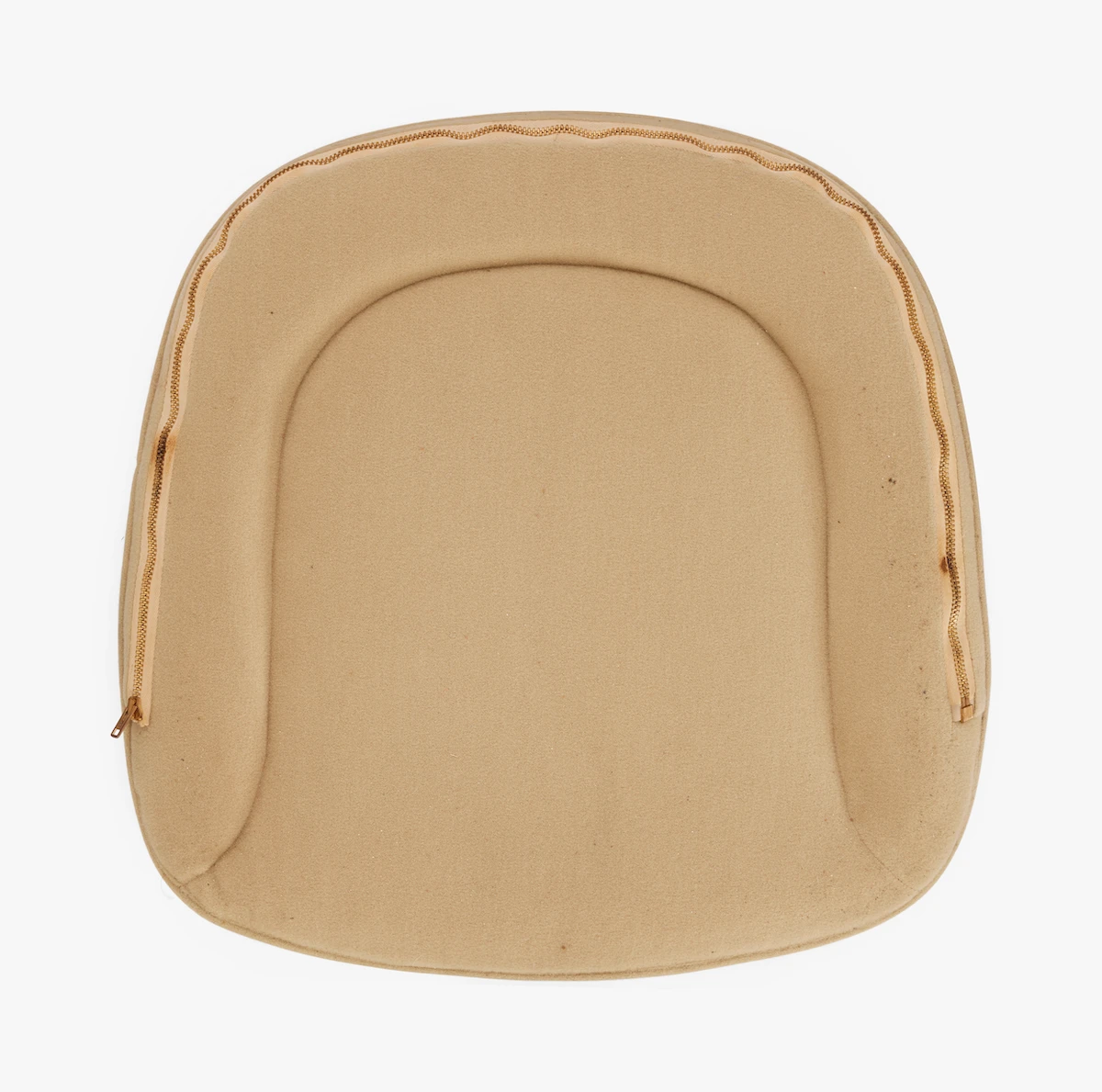 These are just a few of the many cushion prototypes that were made when developing the Loose Cushion Armchair. While designing the seat cushion might seem like a relatively simple task, the Eameses were meticulous in attending to the smallest details of their designs. This meant that even a simple cushion merited careful refinement. According to Johnny Johnson, the Herman Miller employee who was responsible for overseeing the production of Eames furniture at the company’s Gardena, California, manufacturing facility, more than forty different prototypes of the seat cushion were made—“and the one we went with was the one for which Ray had the least objections.” The numerous prototypes left no stone unturned, as the Eameses explored every aspect of the cushion. These examples from 901 Washington Boulevard show several options for stabilizing the cushions’ filling with seams, an approach known as tufting. In one case, they tried a U-shaped curve; for another, a square with rounded corners. The task was made all the more difficult by the fact that the chair would be available in four different textiles, each with its own material properties: nylon Hopsak, Naugahyde, Milnilo (a natural-synthetic blend), and leather.