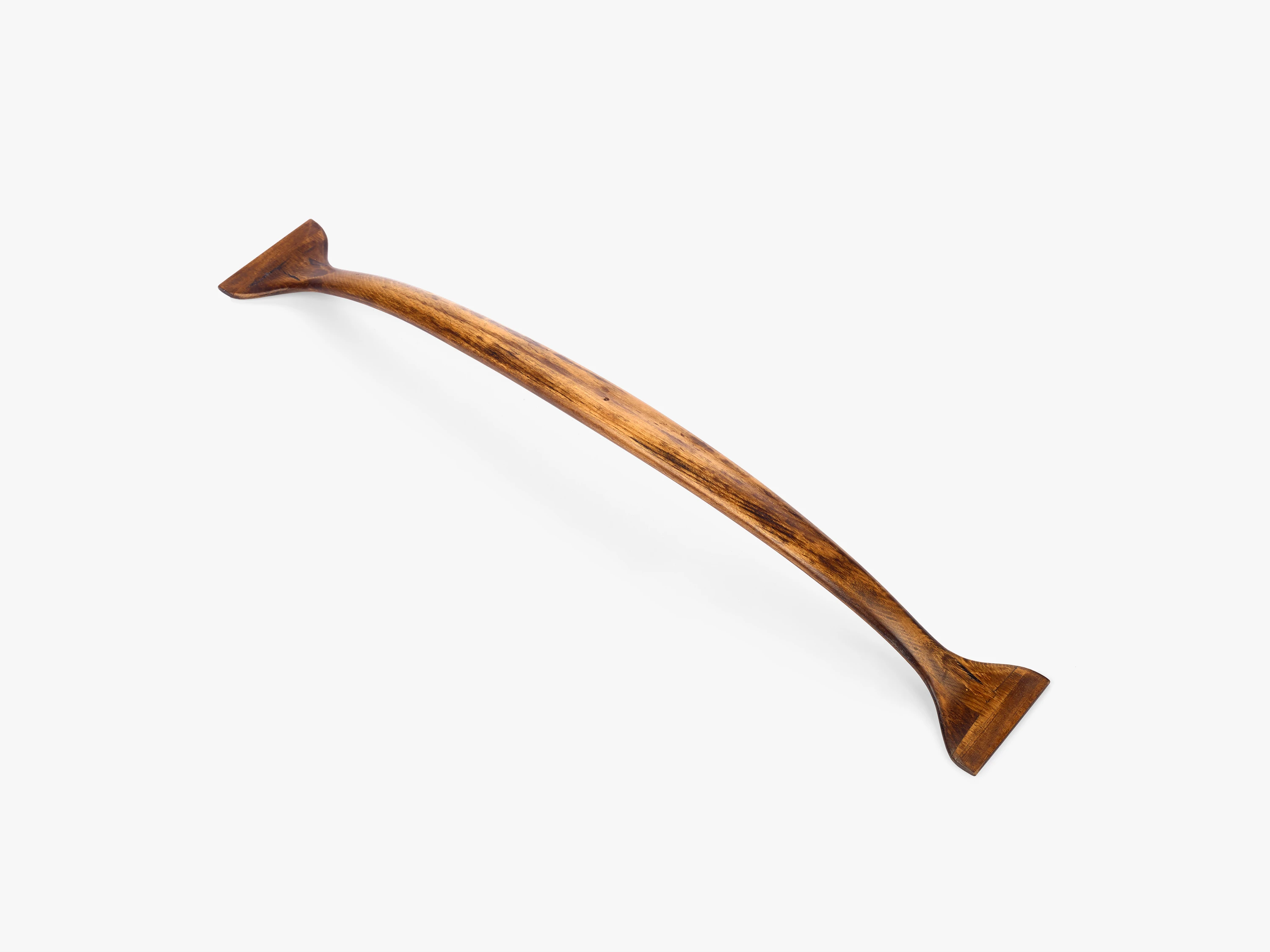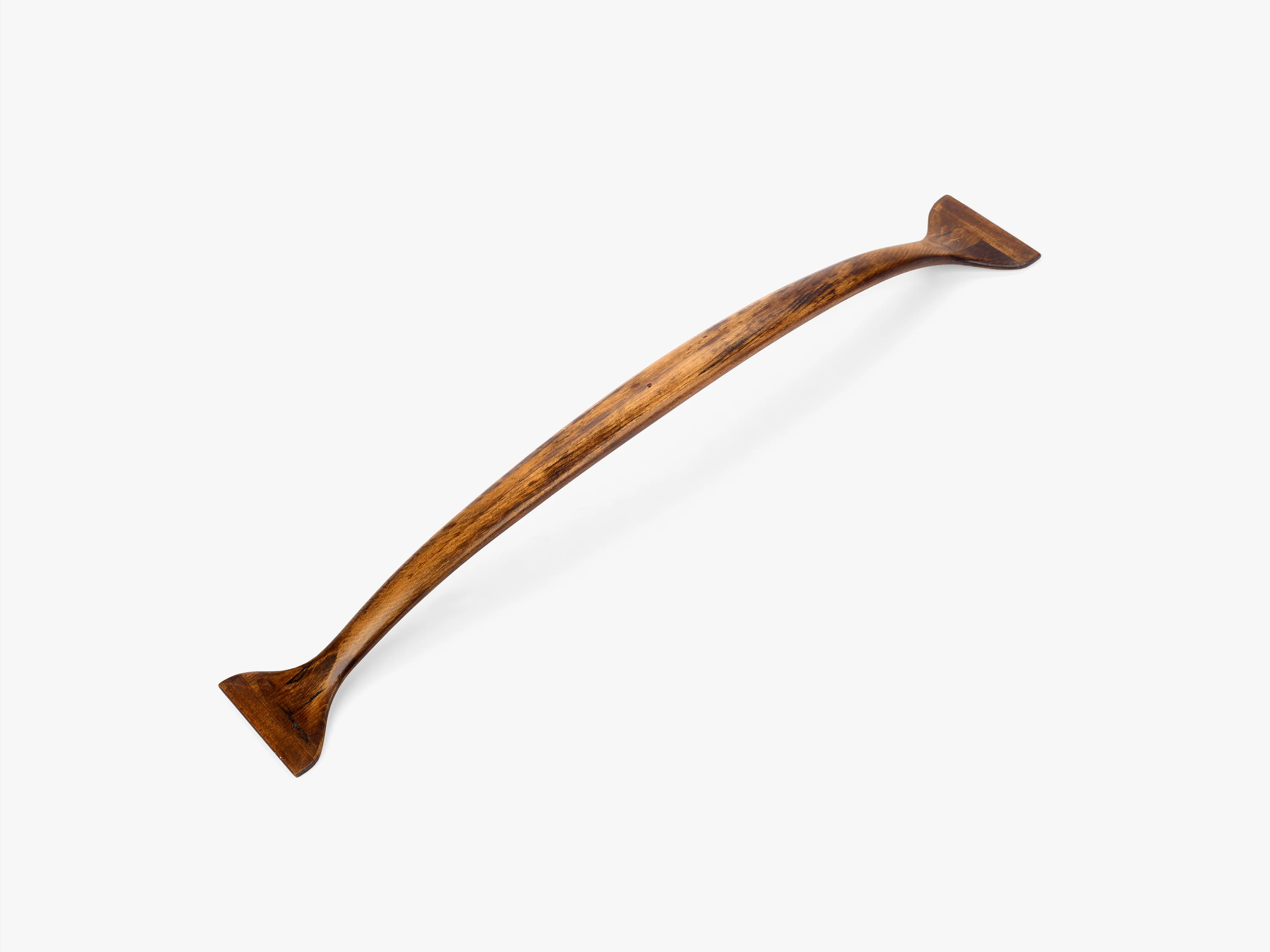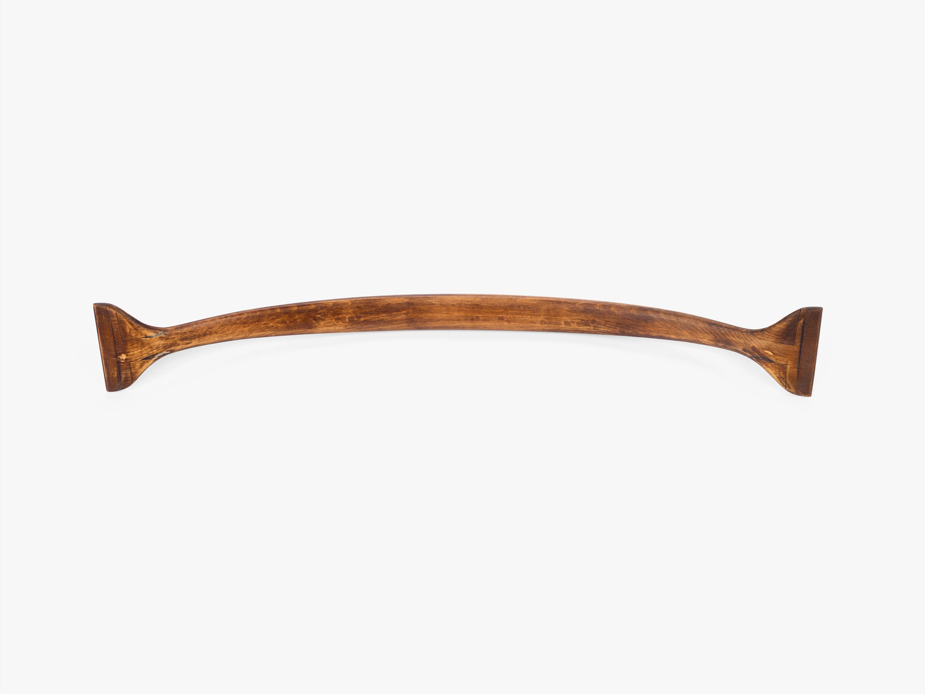 A key conceptual feature of the Eames Aluminum Group is the pair of aluminum spreaders that hold the upholstery taut between two aluminum side members. These spreaders create the necessary tension for transforming fabric into a supportive seat and backrest. Dubbed “antlers” by the Eames Office staff thanks to their distinctive shape, one spreader is located midway up the chair’s back and doubles as a handle. The other is located underneath the seat and serves both to stretch the textile and to attach the body of the chair to its base. In the process of developing the Eames Aluminum Group, eight variations on the antler form were carved in wood before its final shape was determined. The hand-carved prototypes were made by Robert Staples, who worked at the Eames Office from 1957 to 1973. It is known as “iteration,” and has long been an important method used by Ray and Charles for determining the optimal details of a design.
