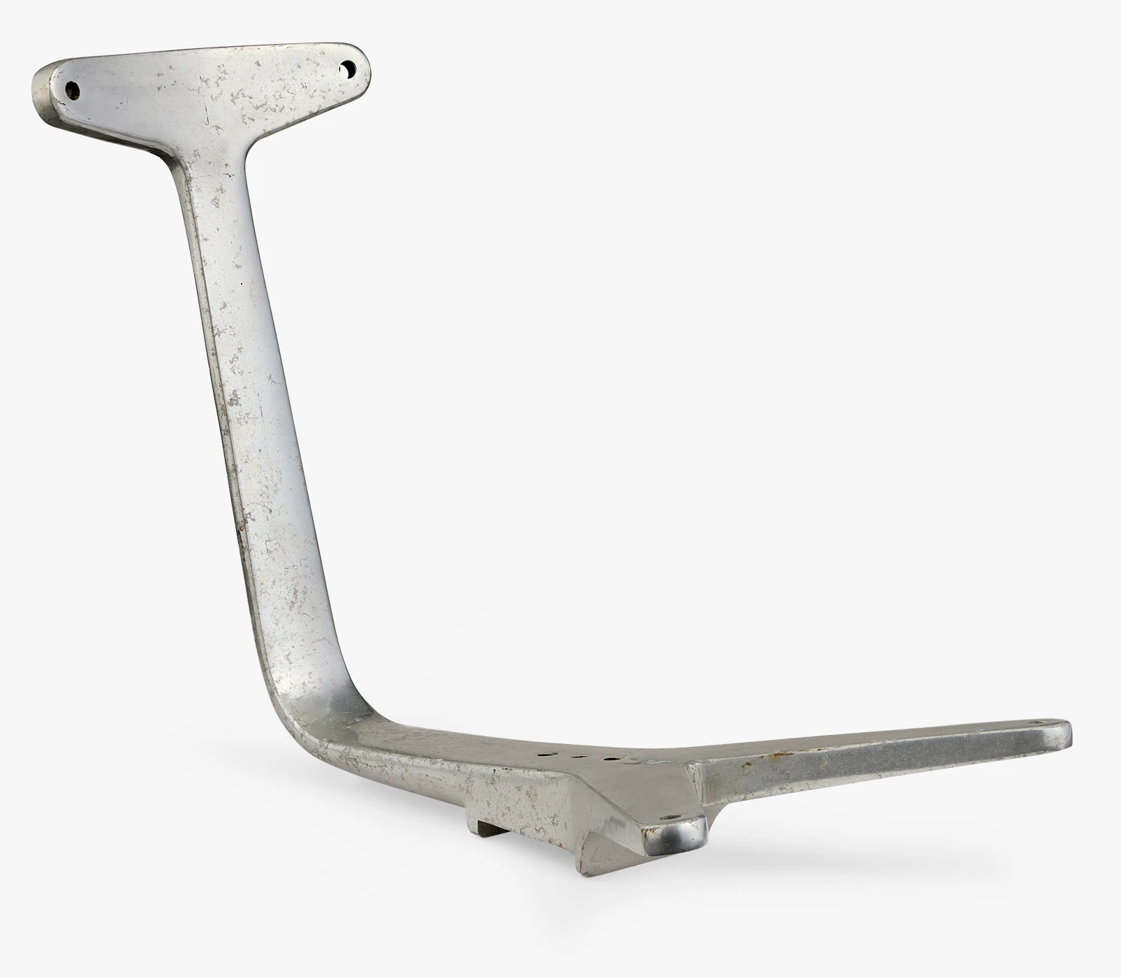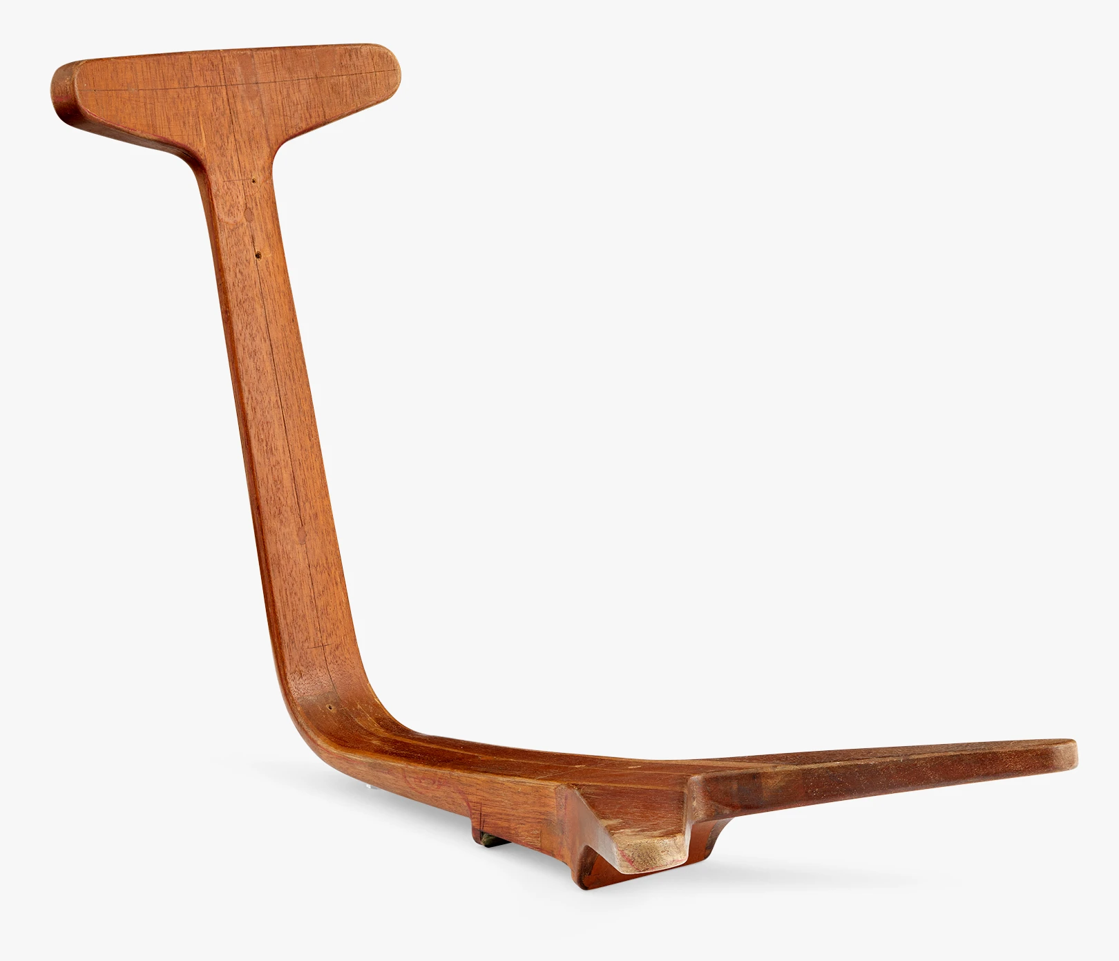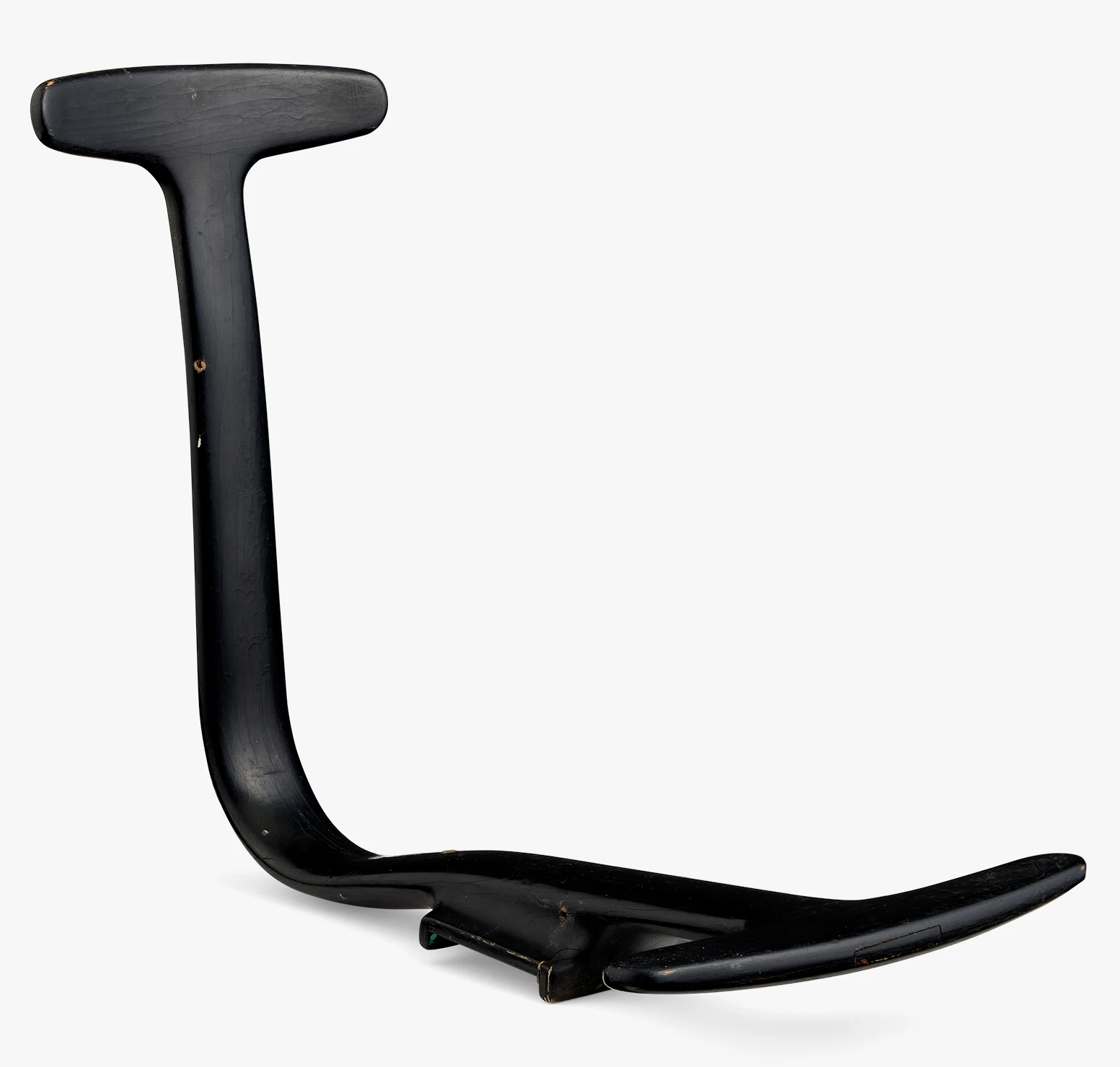 Typical of the Eameses’ systems approach to furniture design, after the successful launch of the EC127 they continued to look for other applications for the design (and its component parts) that would enable it to be utilized for different purposes and environments. With this set of unique prototype spine attachments, they sought to find a way to attach the EC127’s seats and backs to the already existing Tandem Group bases. Initially developed for airports in the early 1960s, the modular design offered efficient rows of individual seats (or table tops) affixed to a T-shaped, structural steel 3x3-inch support beam running the continuous length of the unit. Of these seven prototype spines, some are carved from wood and others are sand-cast in metal. The wooden prototypes would have been made first, with the aim of establishing the form. Metal would have followed, as the designers worked out the shape that would translate into the materials that would be used in production. In this case, the design was not pursued any further than this stage, likely due to the fact that castings would require a significant up-front investment in molds, and the need was already being met by existing Eames designs. Nonetheless, these prototypes offer a valuable record of the Eameses’ design exploration process.