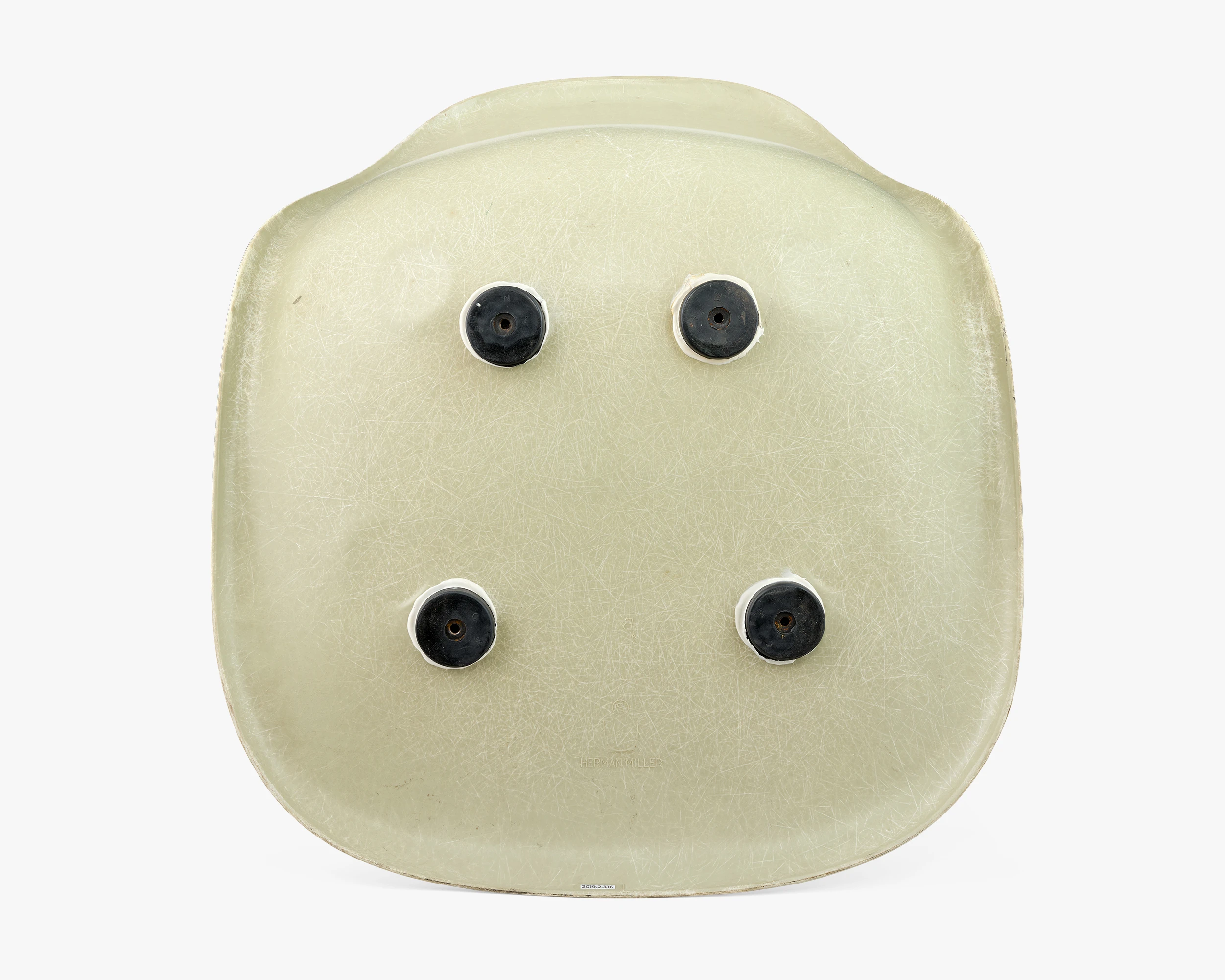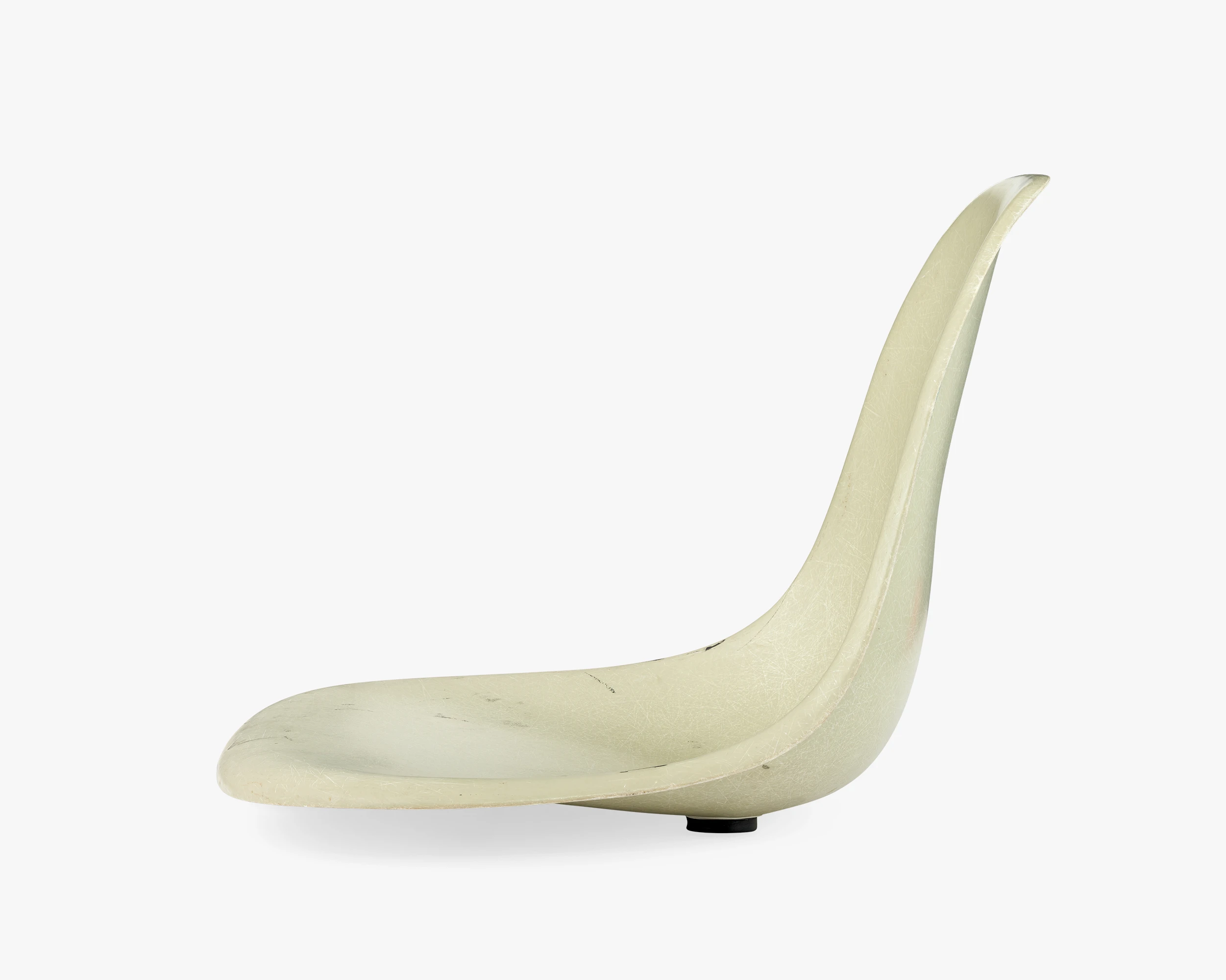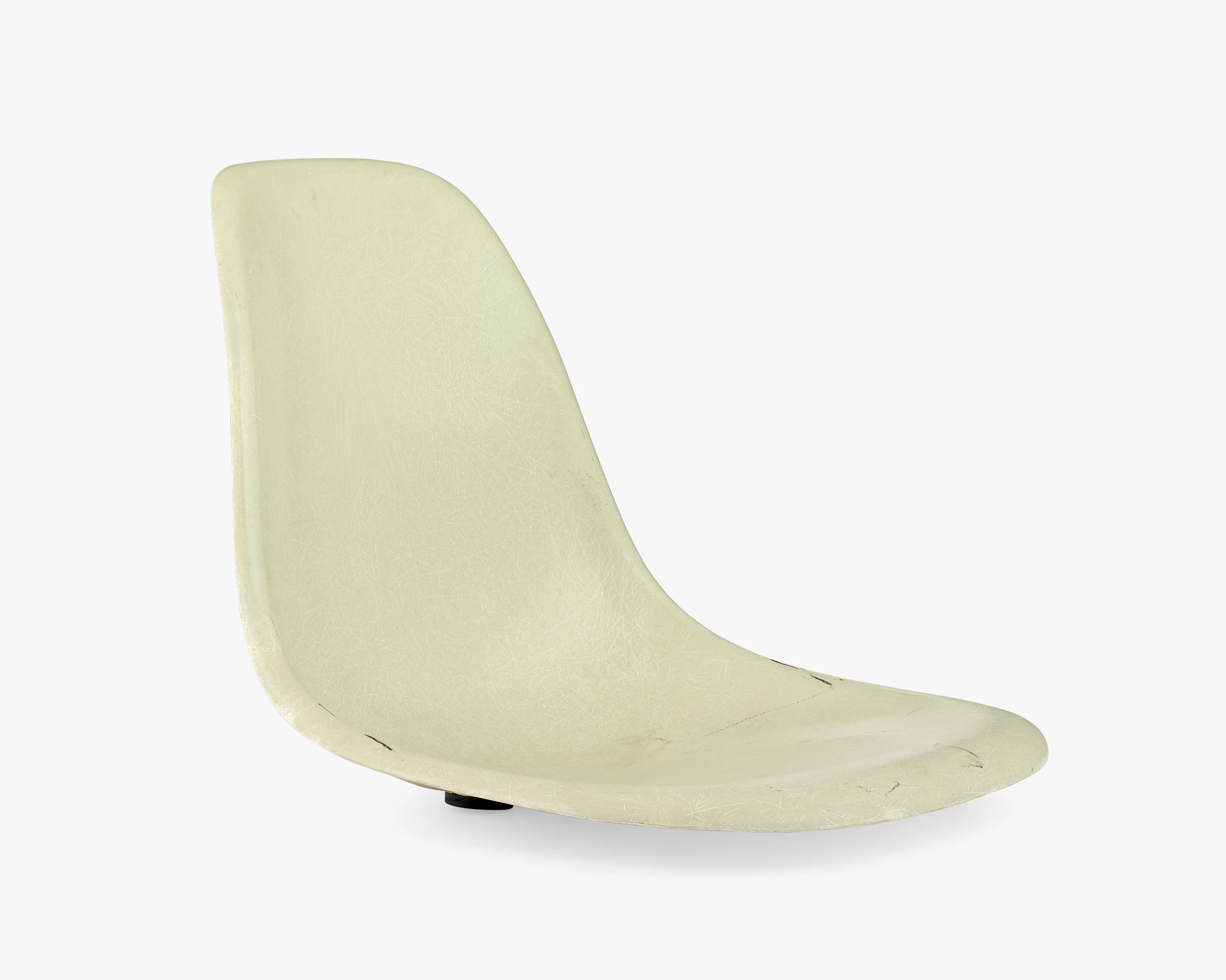 Fabricating the Side Shells turned out to be a greater challenge than Ray and Charles anticipated. The earliest Side Shells that went into production in 1953 were very thin and tended to crack at the edge where the back rises from the seat. This example is a “survivor” that didn’t crack. The Eameses continued to iterate on the design—trying to find the right balance of weight and strength. They started producing the thicker shell two years later, which remained unchanged until 1993.