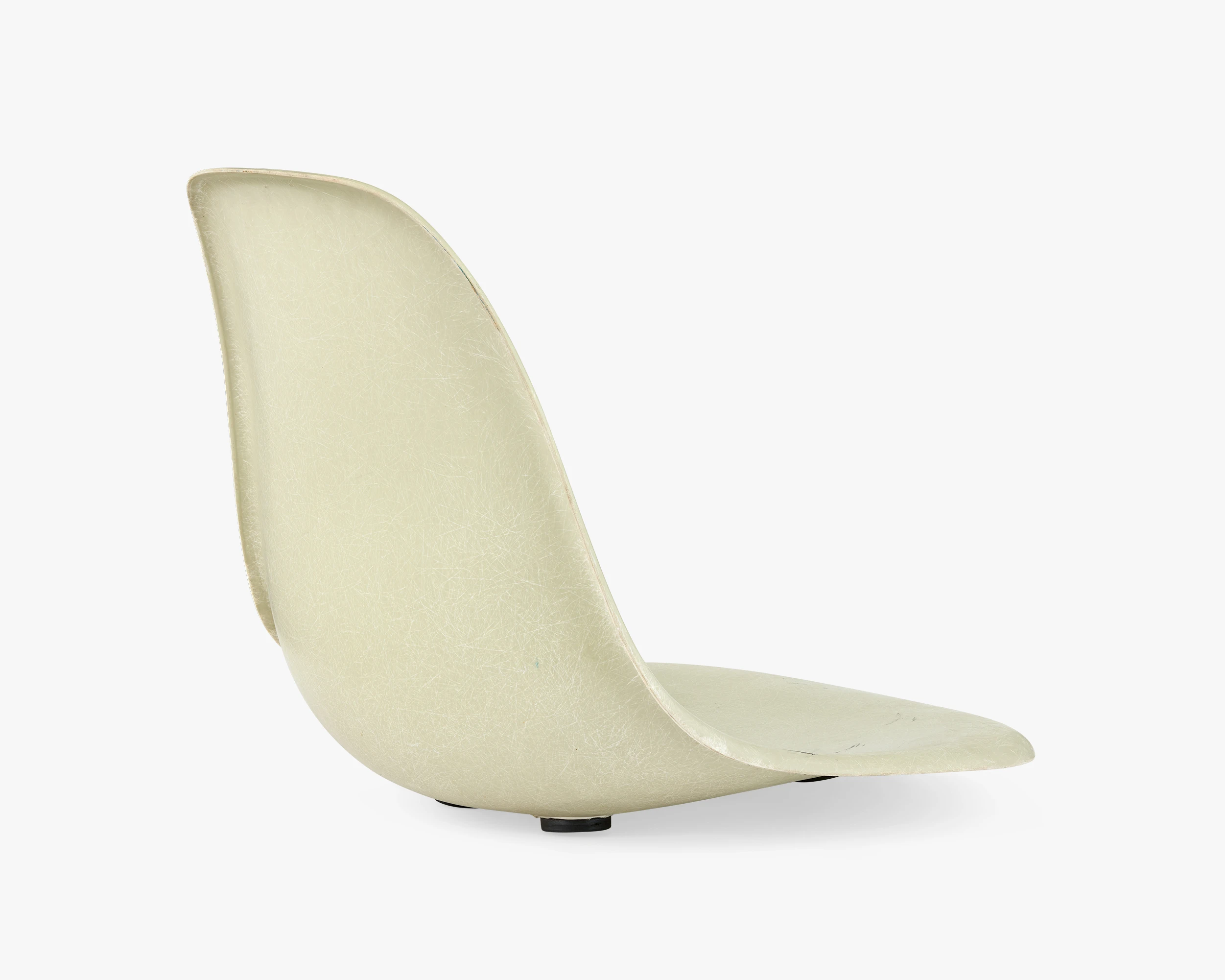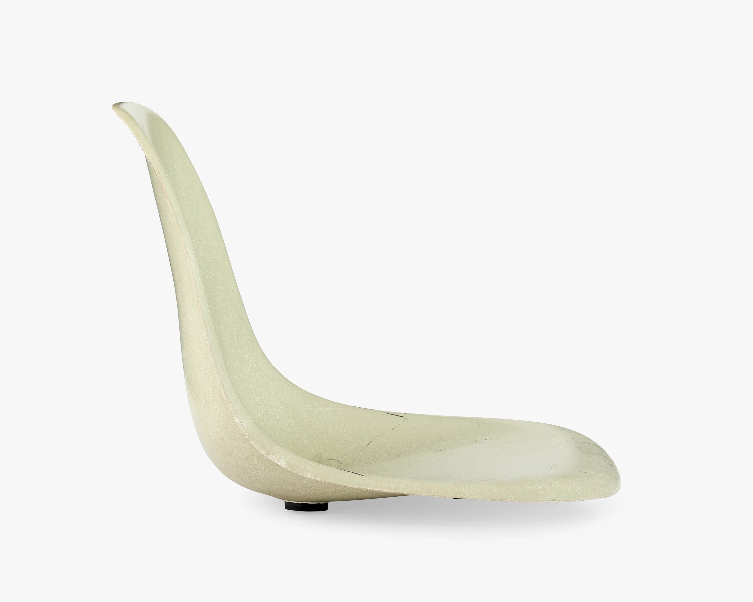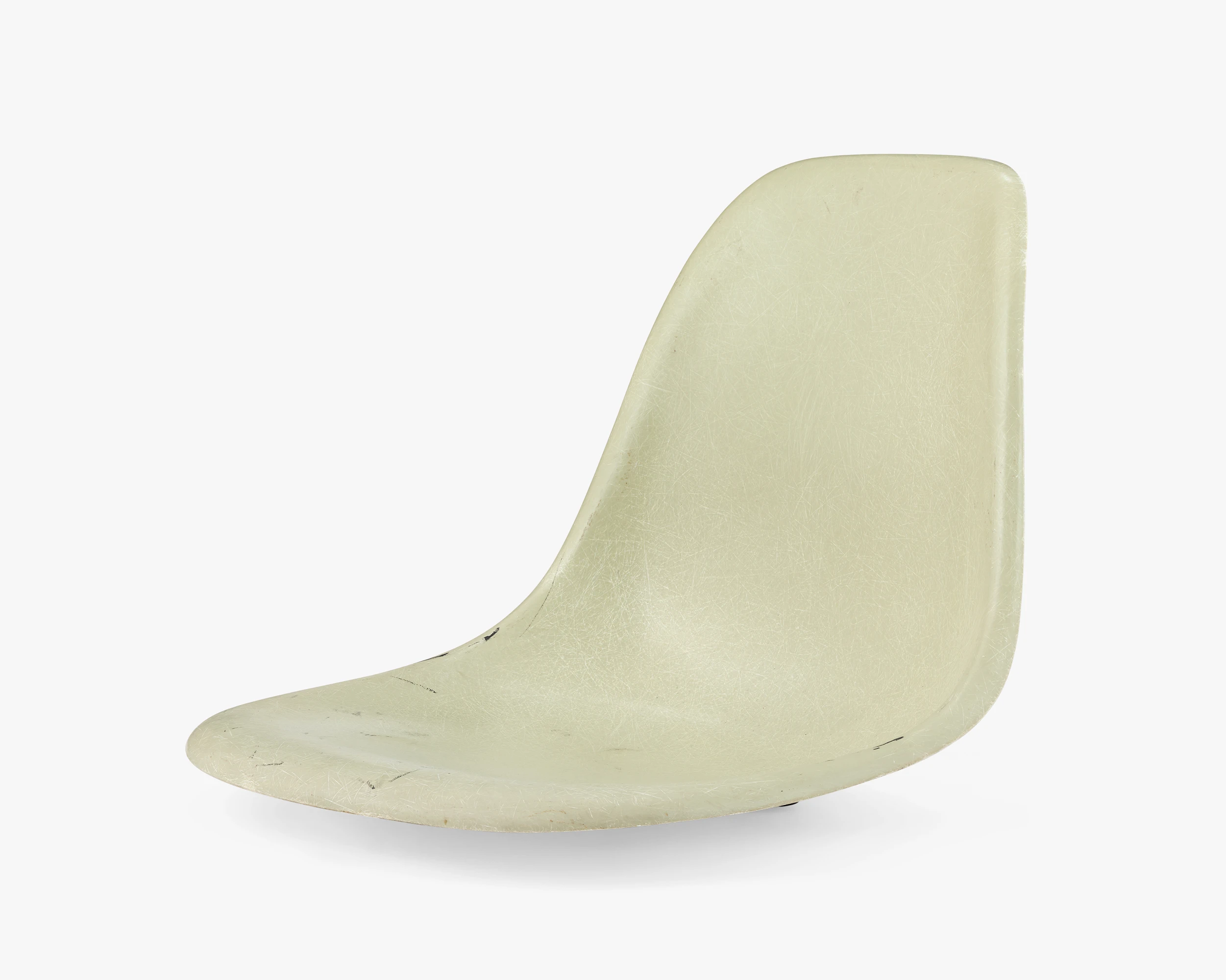 Fabricating the Side Shells turned out to be a greater challenge than Ray and Charles anticipated. The earliest Side Shells that went into production in 1953 were very thin and tended to crack at the edge where the back rises from the seat. This example is a “survivor” that didn’t crack. The Eameses continued to iterate on the design—trying to find the right balance of weight and strength. They started producing the thicker shell two years later, which remained unchanged until 1993.