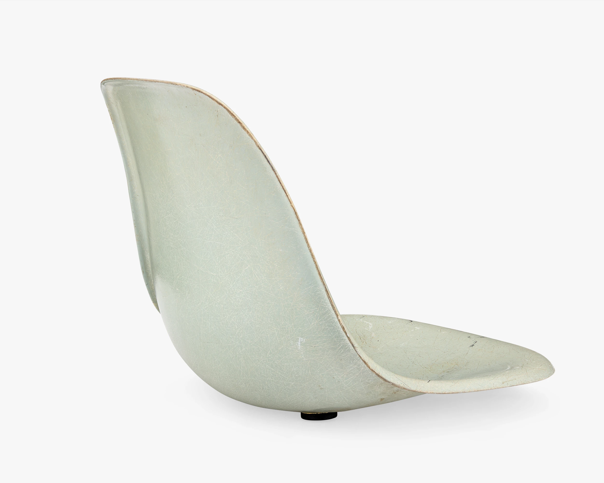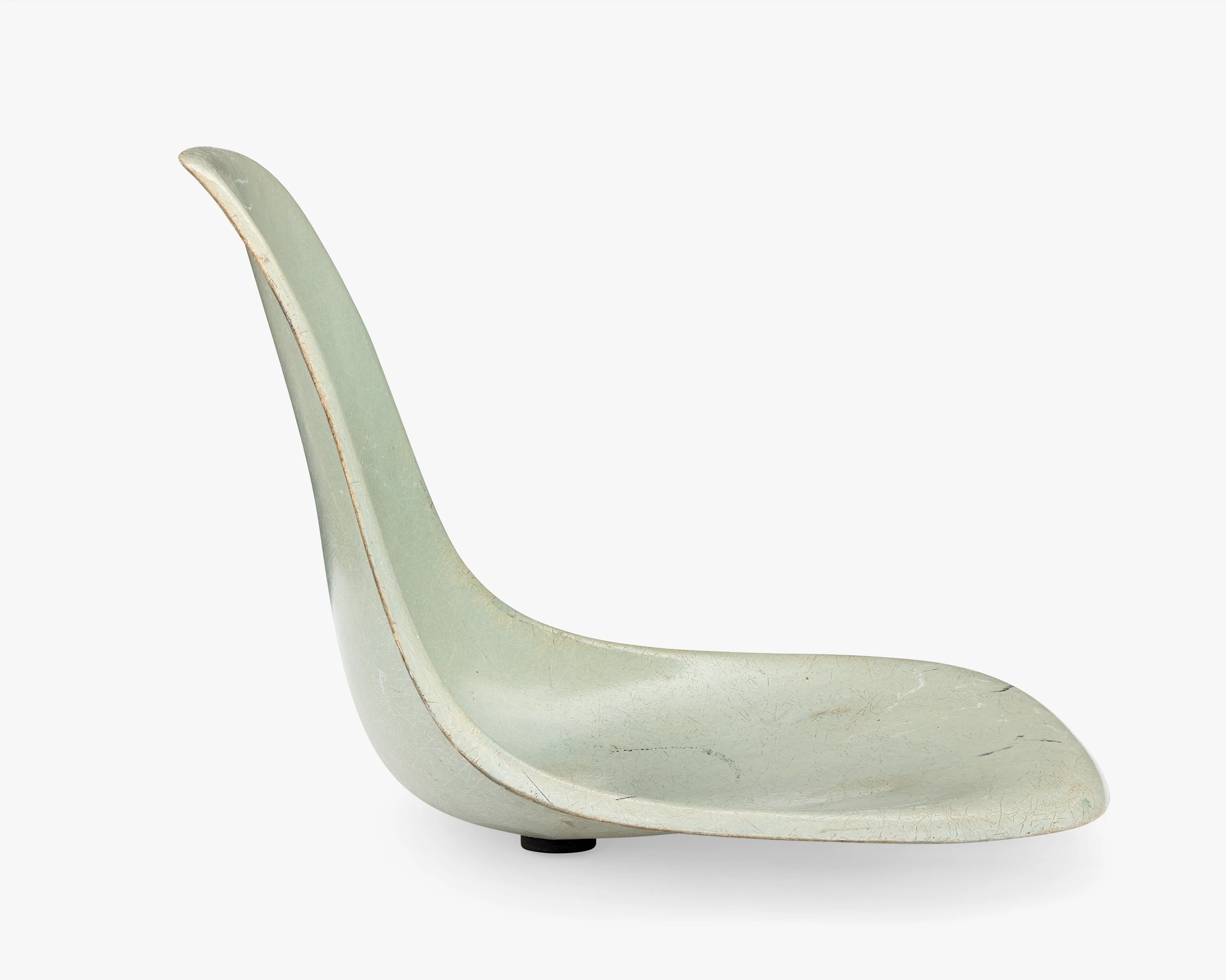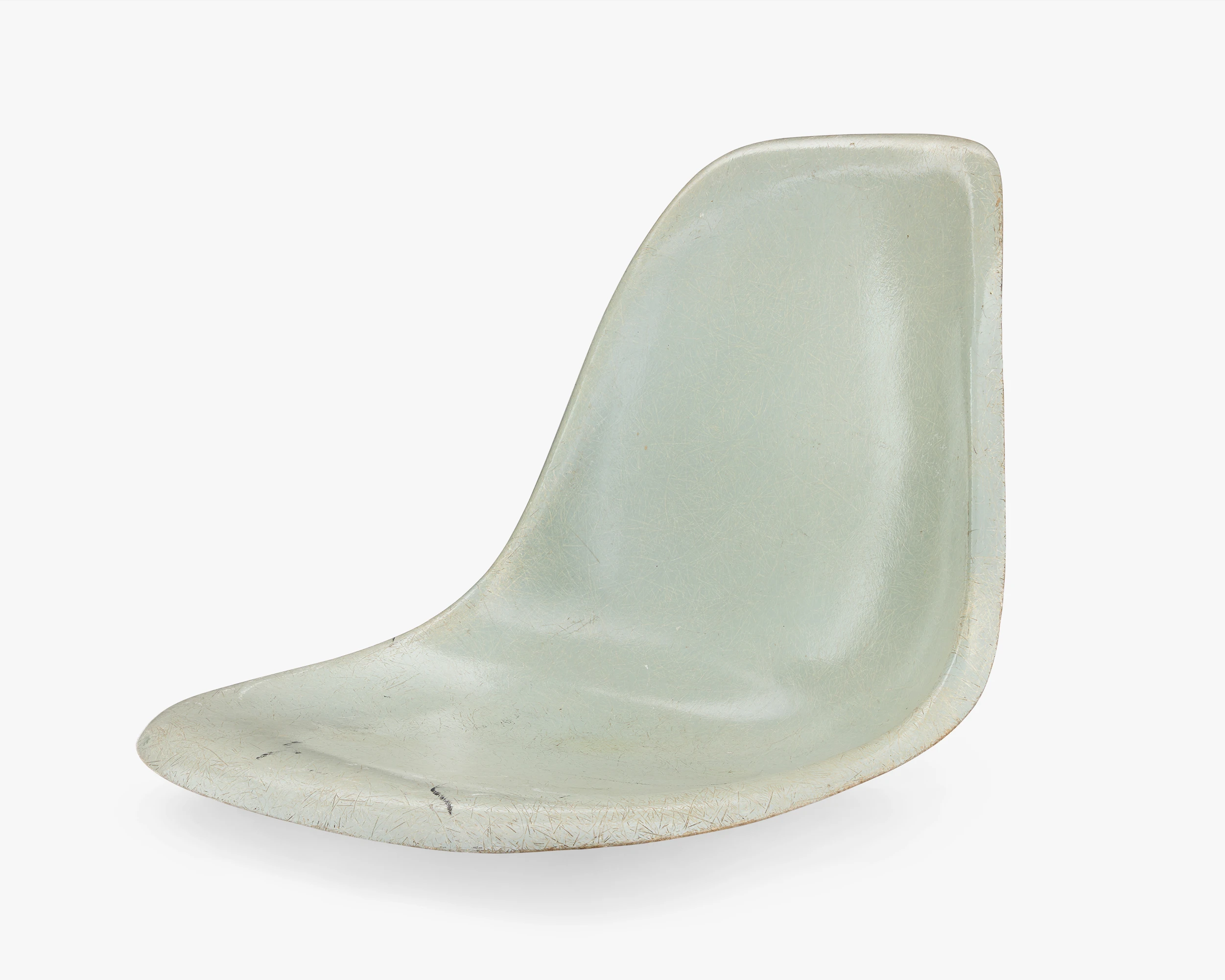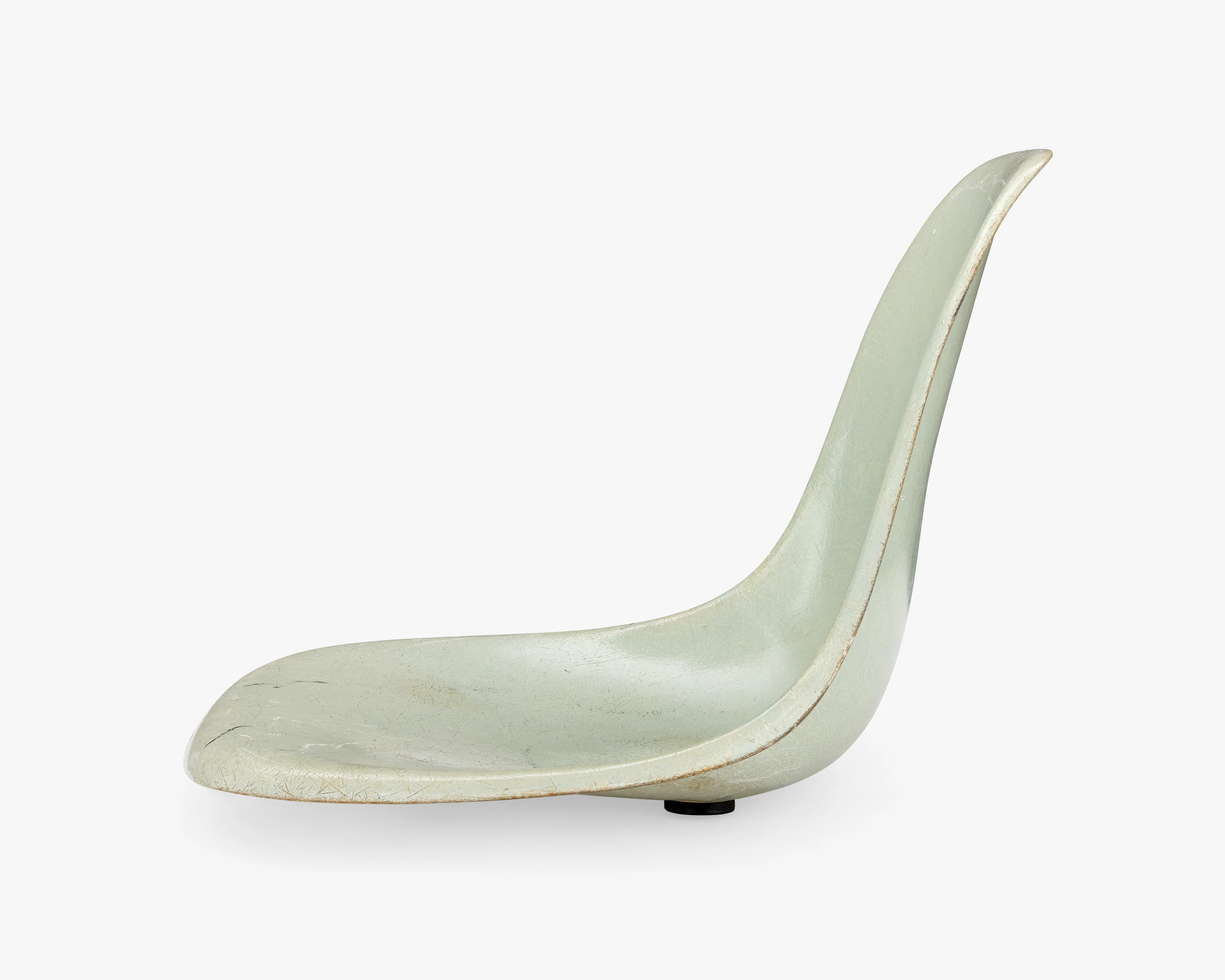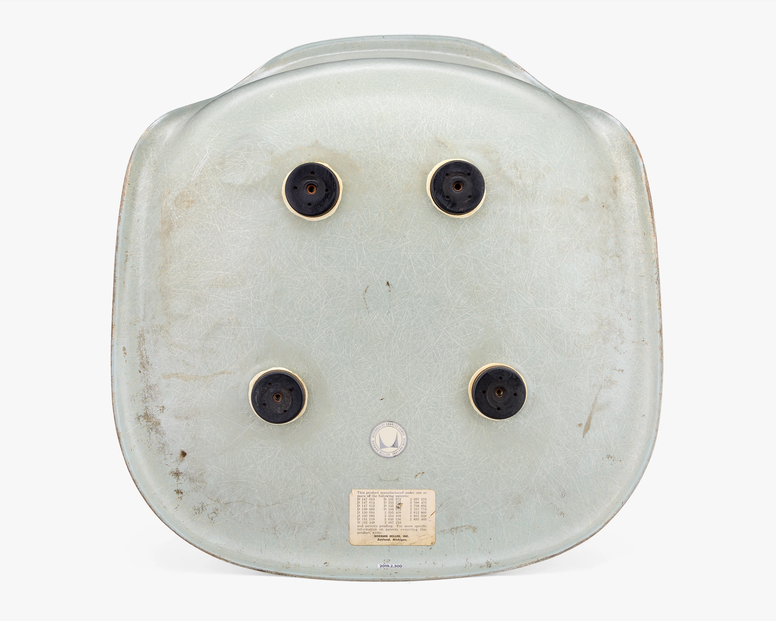 This Sea Foam Green Light shell still has its original shockmounts. When Ray and Charles began to mass-produce fiberglass chairs they were advised by Herman Miller’s D. J. De Pree to start with the most difficult design to fabricate—the Armchair. After the Armchair went into production, the duo discovered that, in fact, the Side Shell was far more challenging. They spent several years working on the prototypes to create a satisfactory final design.