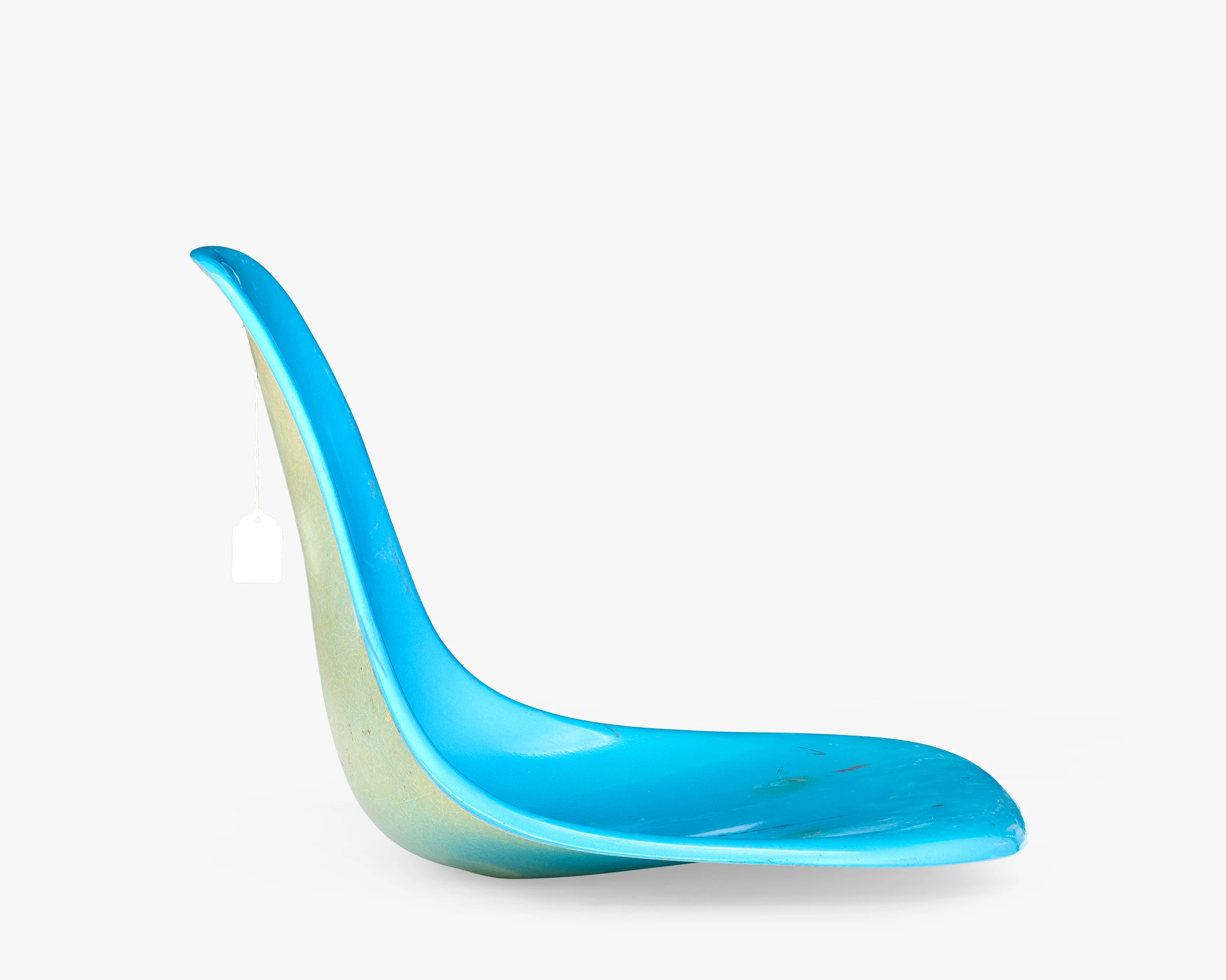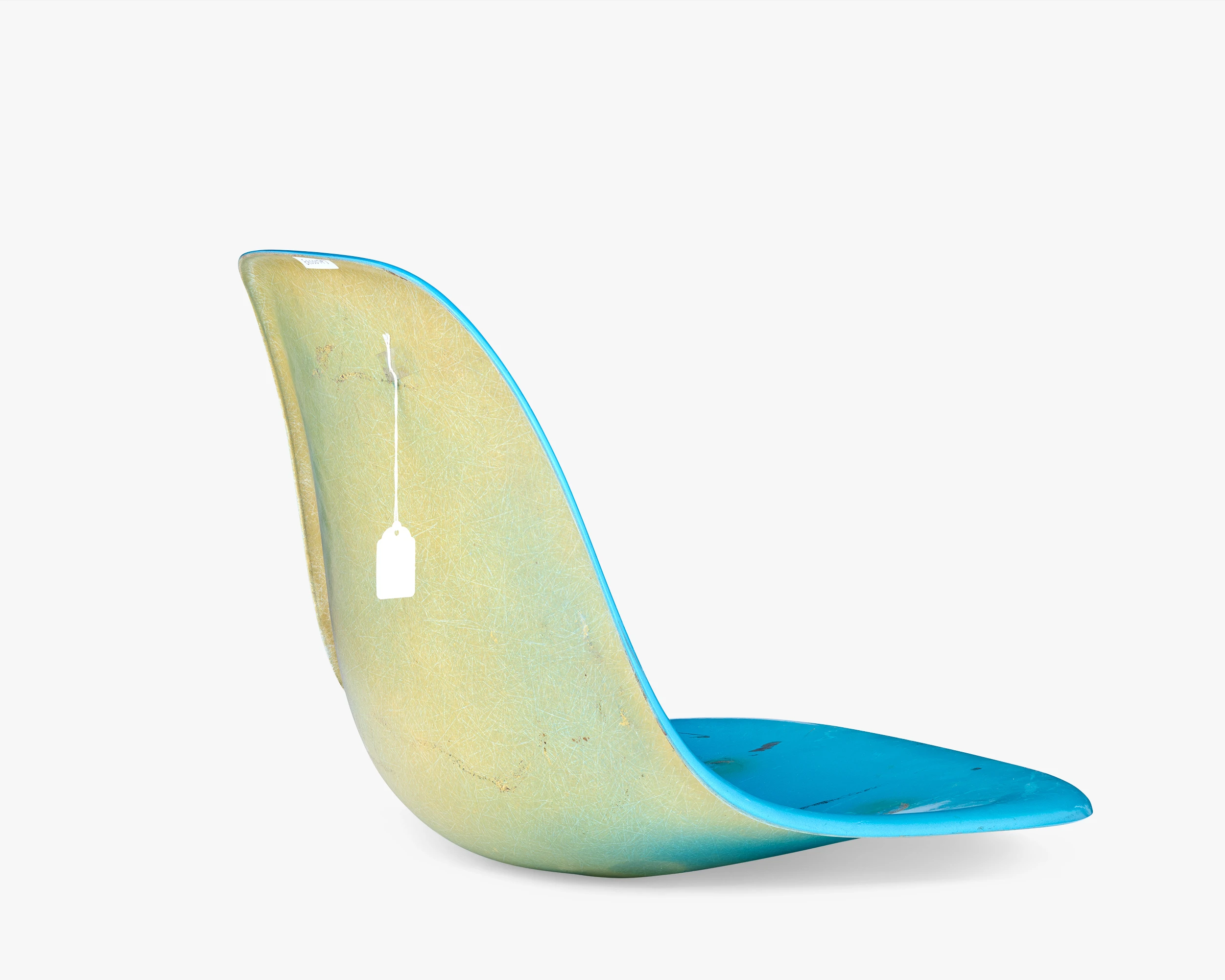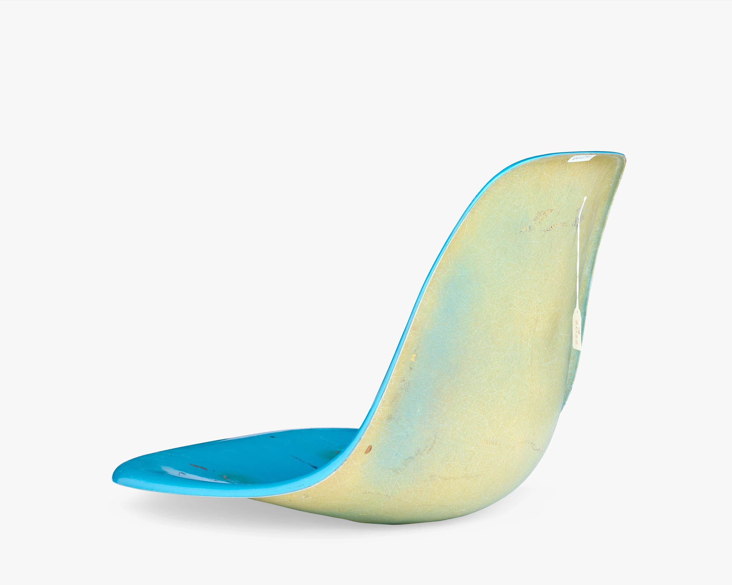 The collection has several color-test samples from different fiberglass manufacturers. This test sample for the color Aqua Blue shows mottled yellow on the back, which indicates that the pigment didn’t permeate the whole shell.