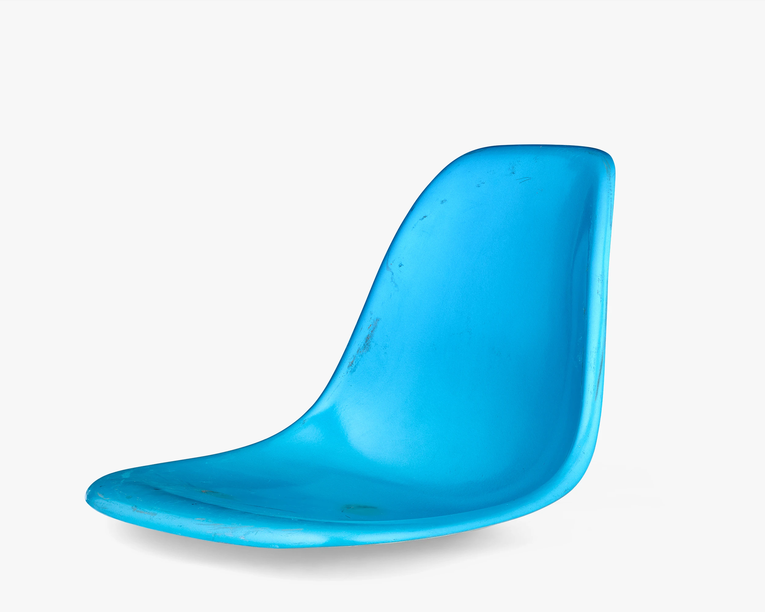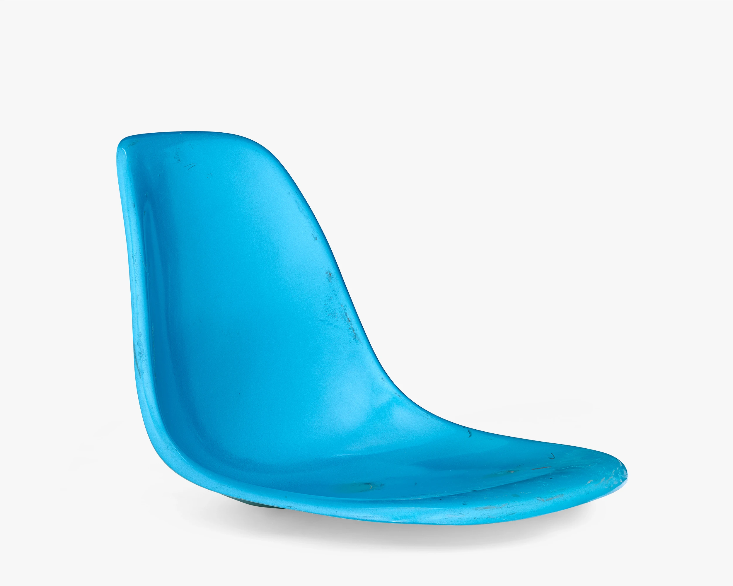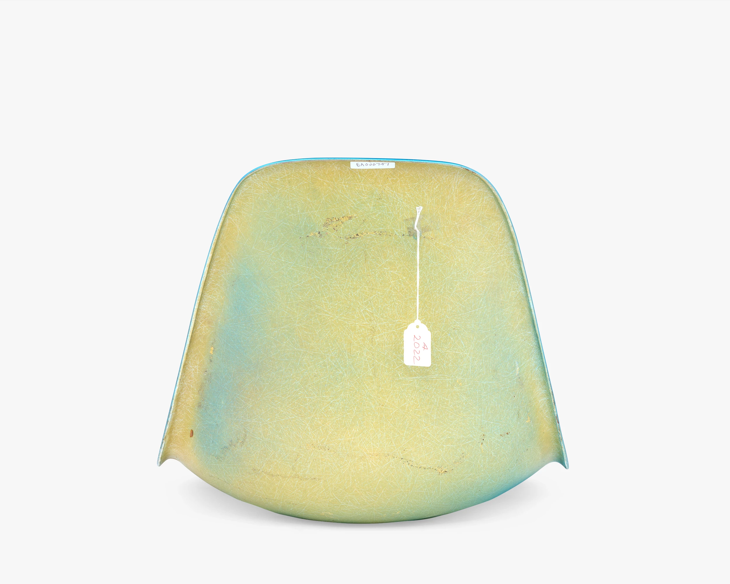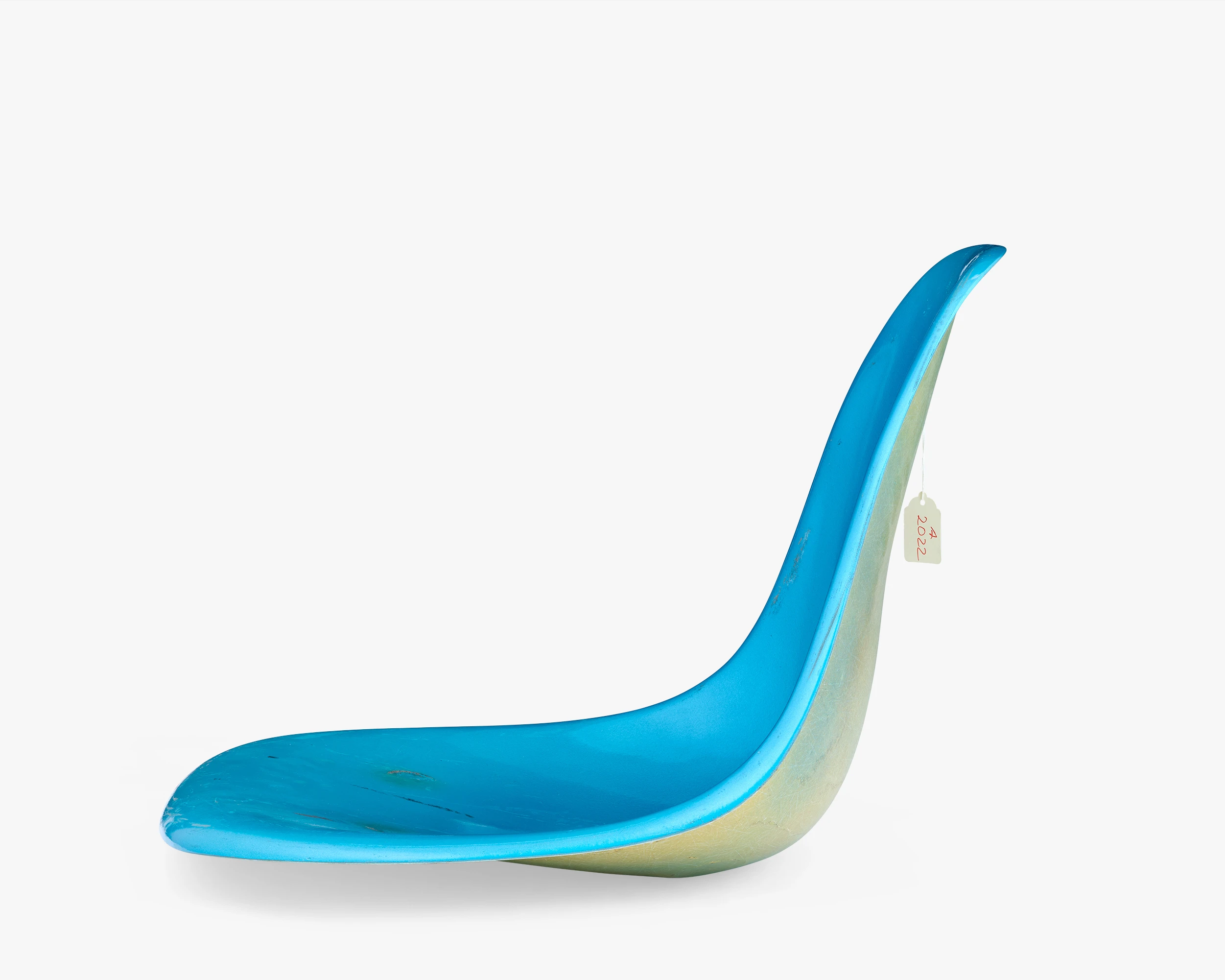 The collection has several color-test samples from different fiberglass manufacturers. This test sample for the color Aqua Blue shows mottled yellow on the back, which indicates that the pigment didn’t permeate the whole shell.