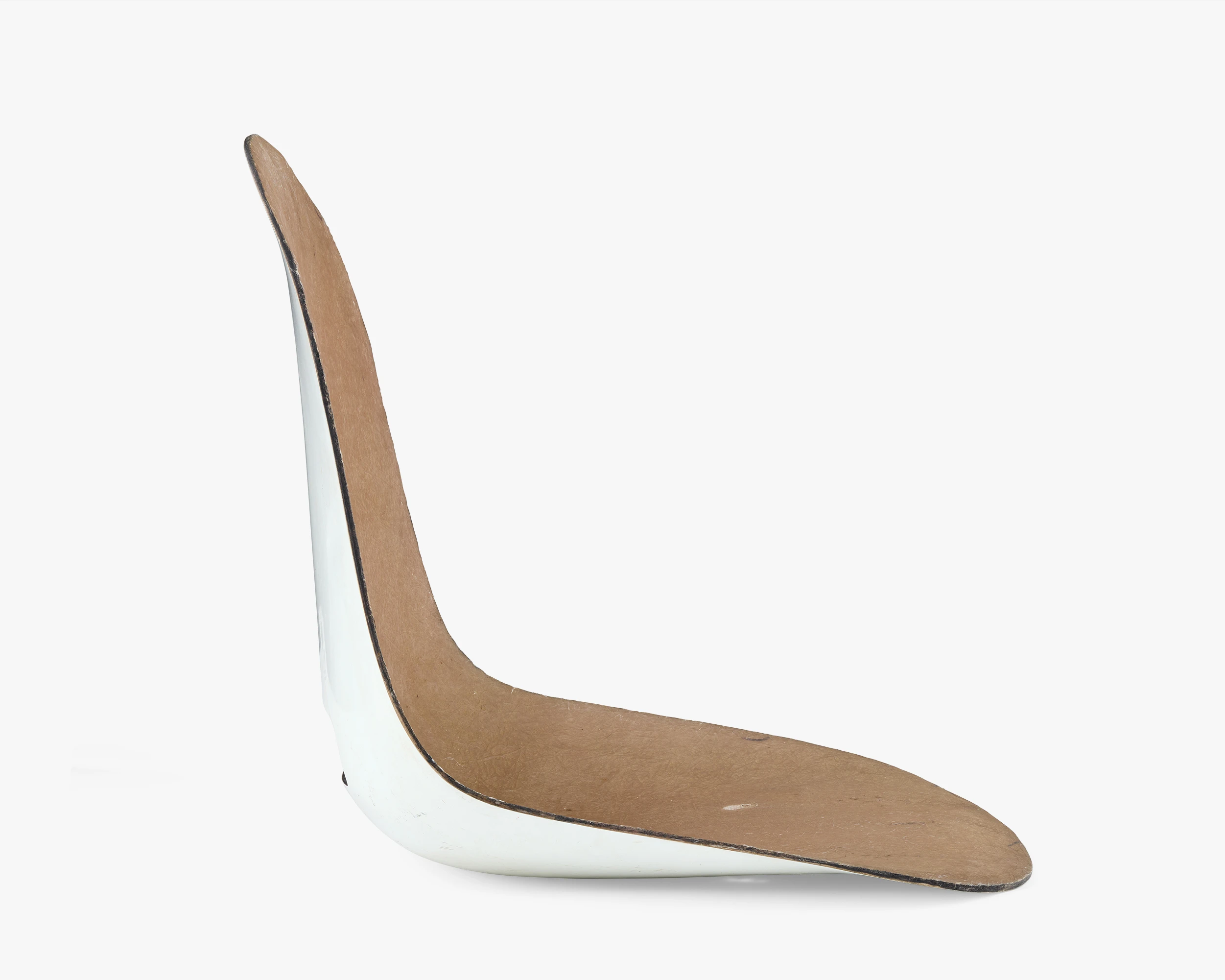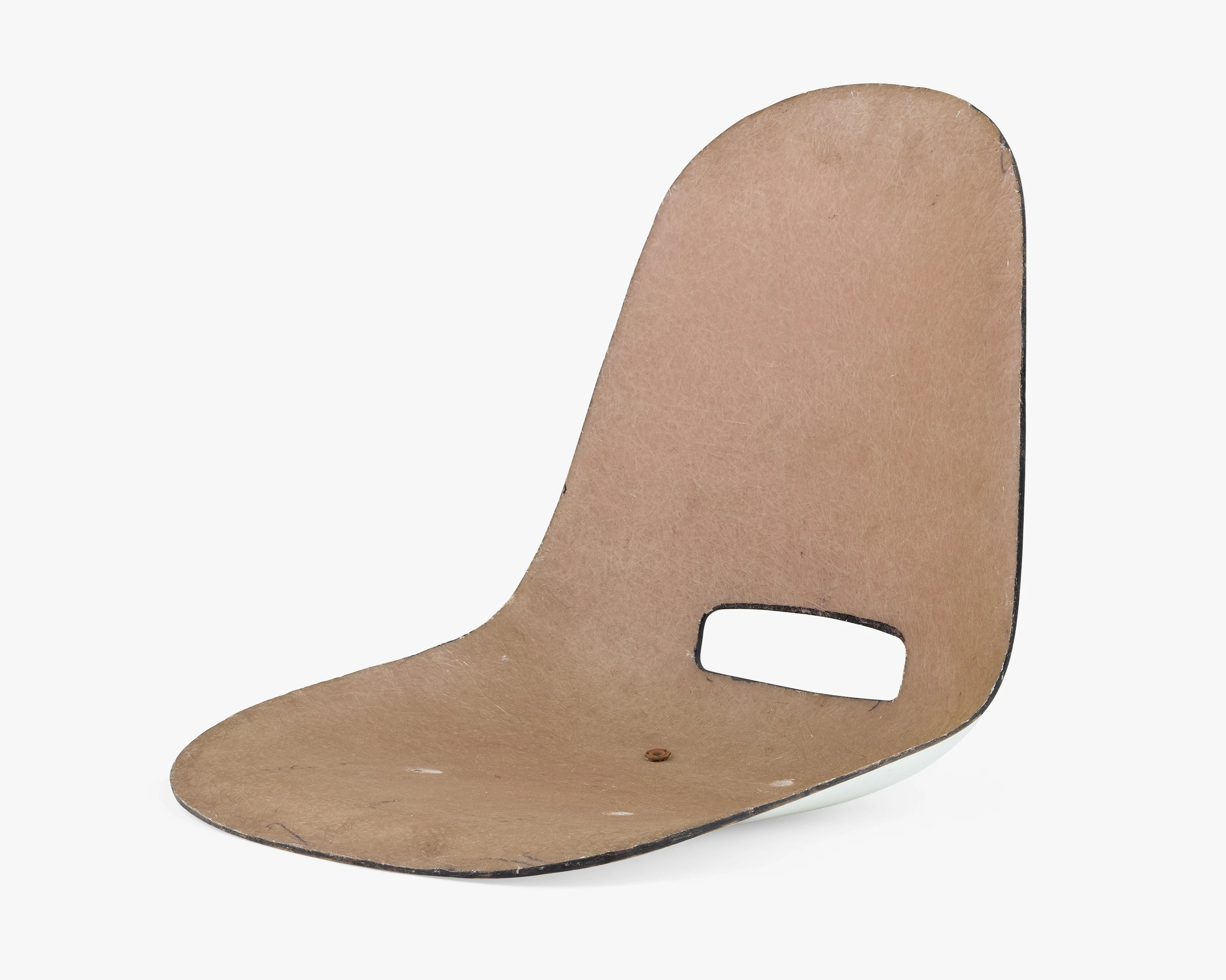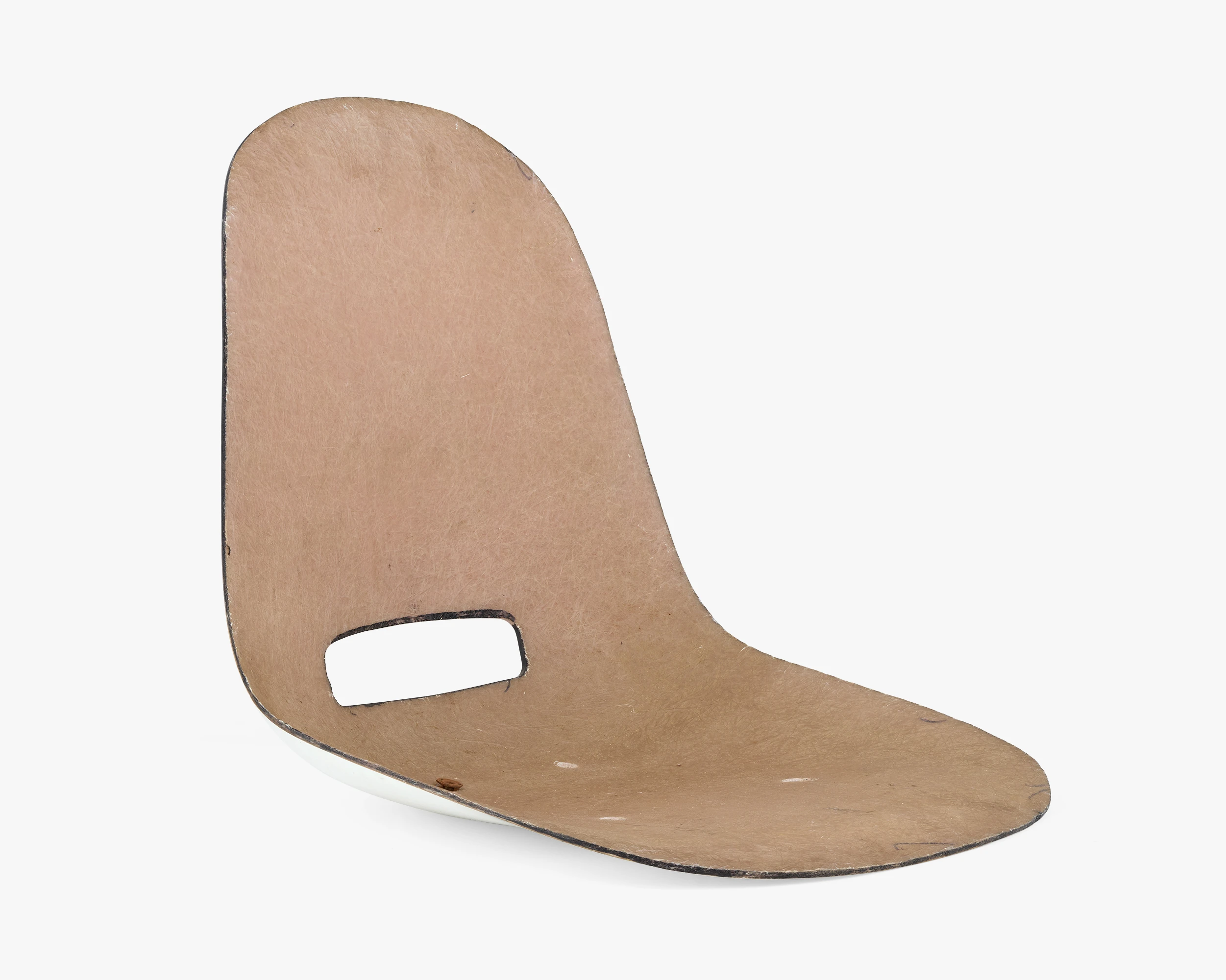 There are very few sketches of chairs in the collection. Rather than draw sketches of ideas for a chair, Ray and Charles liked to be very hands-on when iterating an idea. Even if they decided to go with the first prototype, Charles said they needed to make the other seven or else they would not know that the first one was the best. The characteristics of this shell, smooth on one side, rough on the other, are a result of the handmade process that produced it.