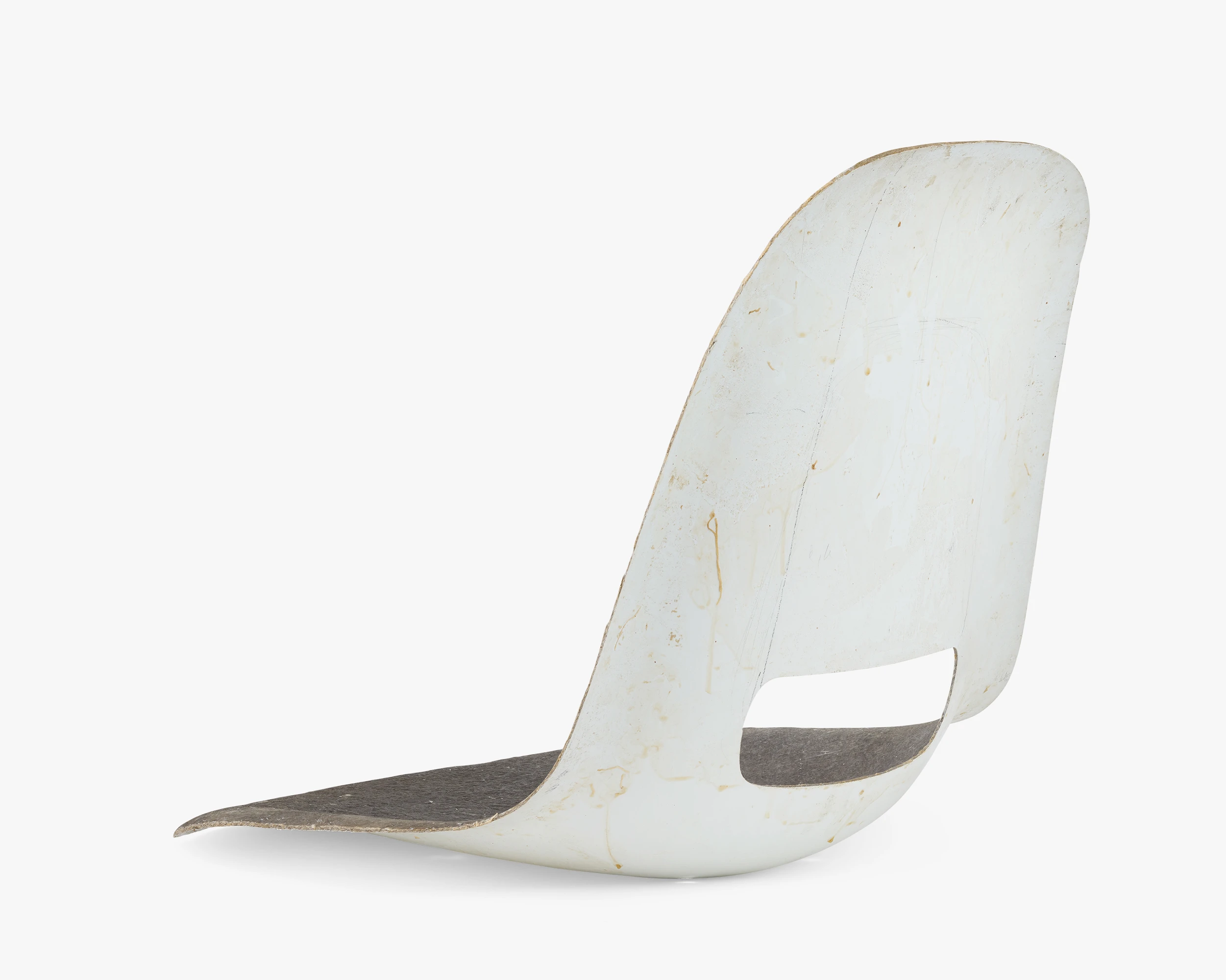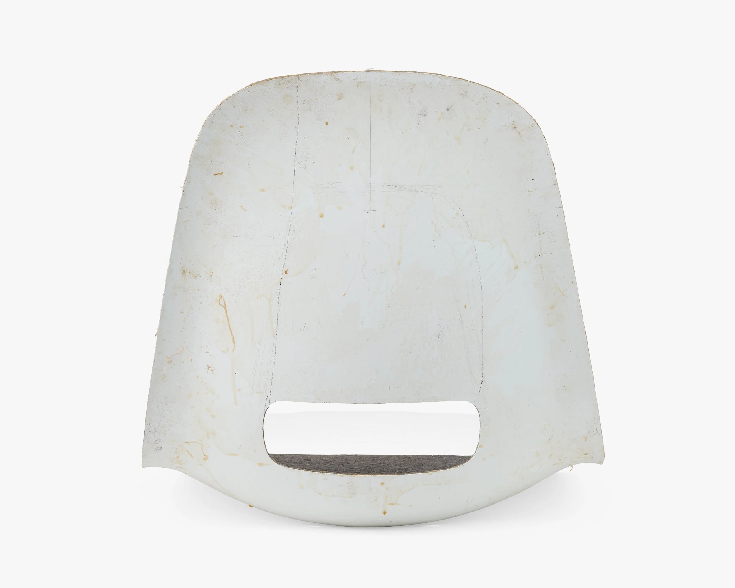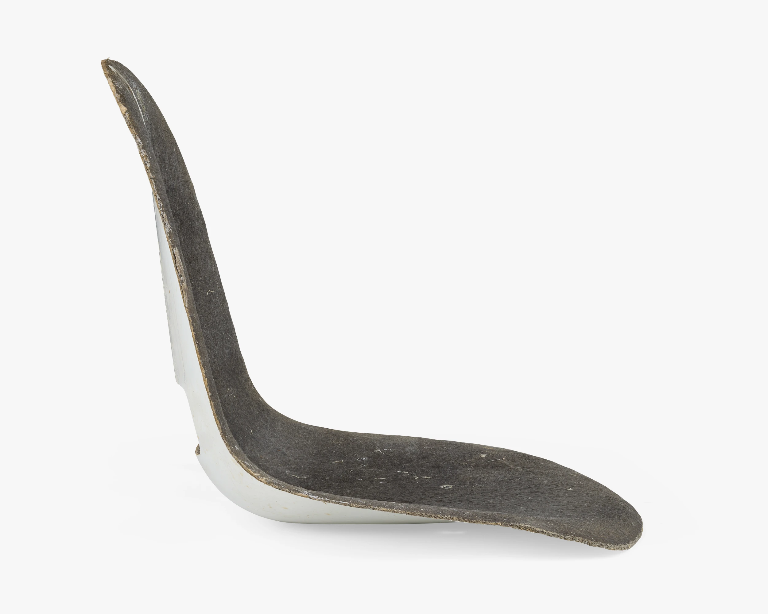 Working with fiberglass was a departure from Ray and Charles’s process of molding plywood. Fiberglass afforded all kinds of new design possibilities while also posing new challenges. The smooth surface on the front and the rough surface on the back indicates that this shell was made by hand.