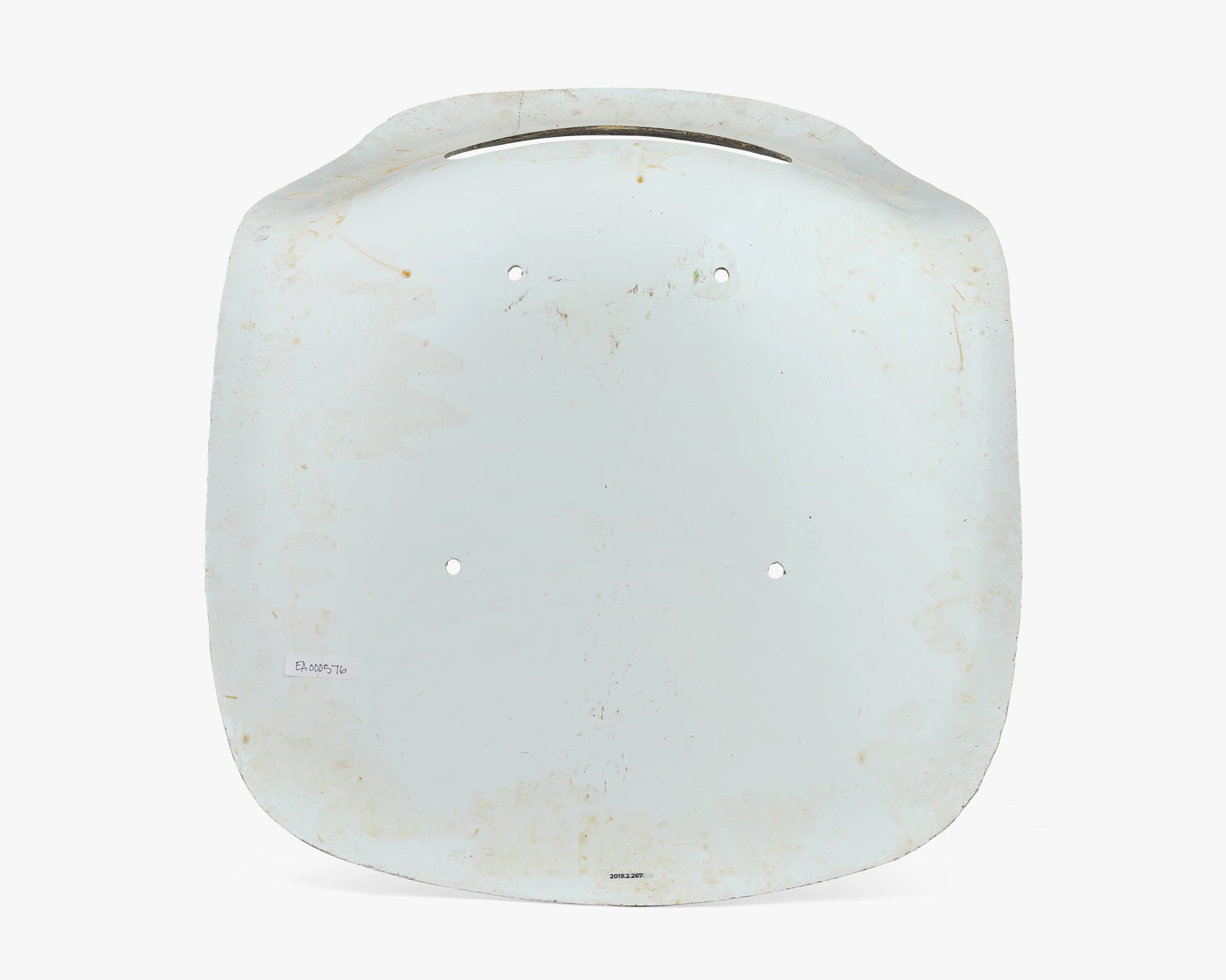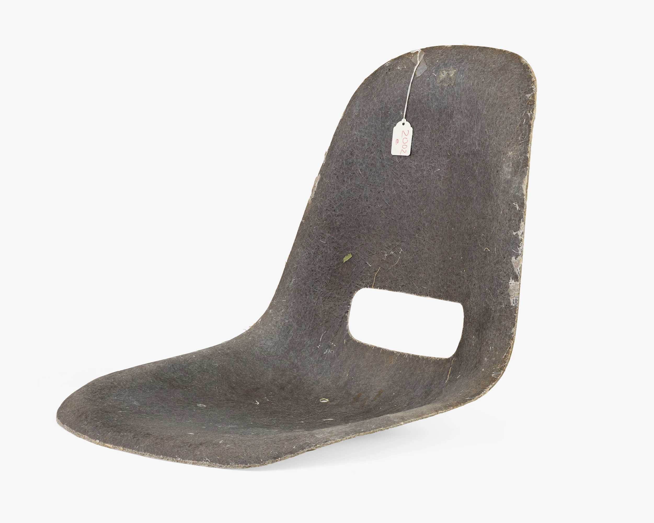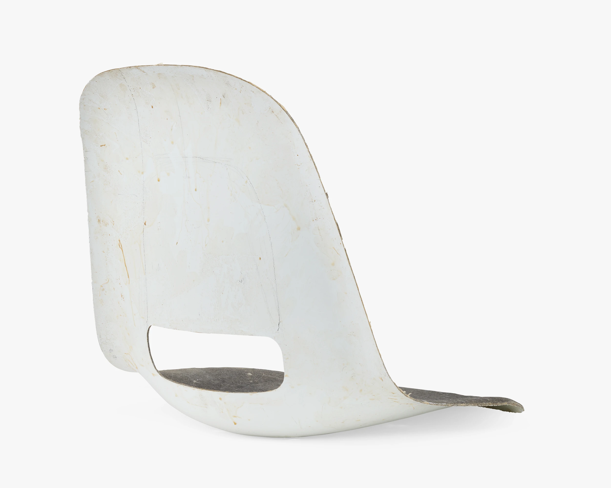 Working with fiberglass was a departure from Ray and Charles’s process of molding plywood. Fiberglass afforded all kinds of new design possibilities while also posing new challenges. The smooth surface on the front and the rough surface on the back indicates that this shell was made by hand.