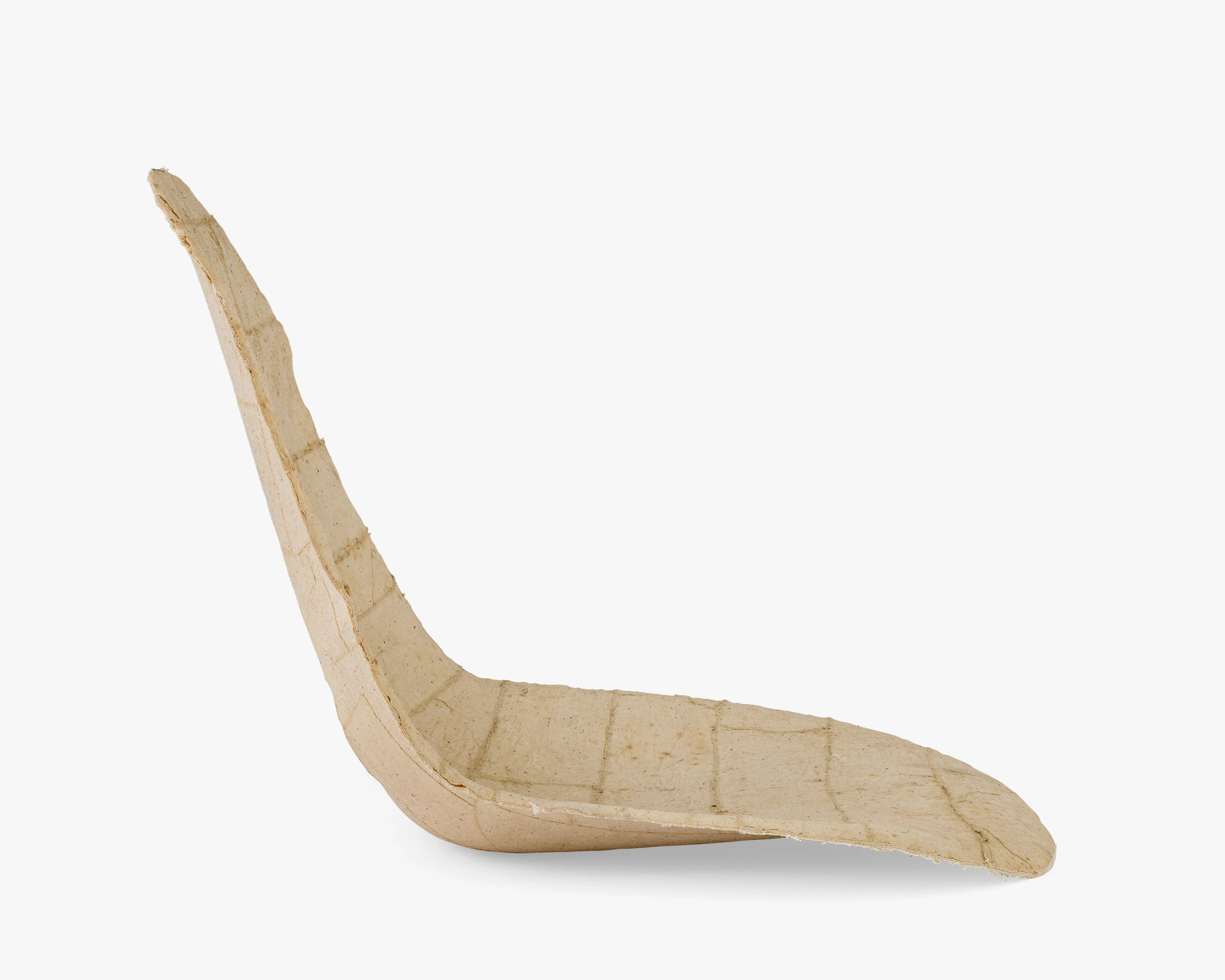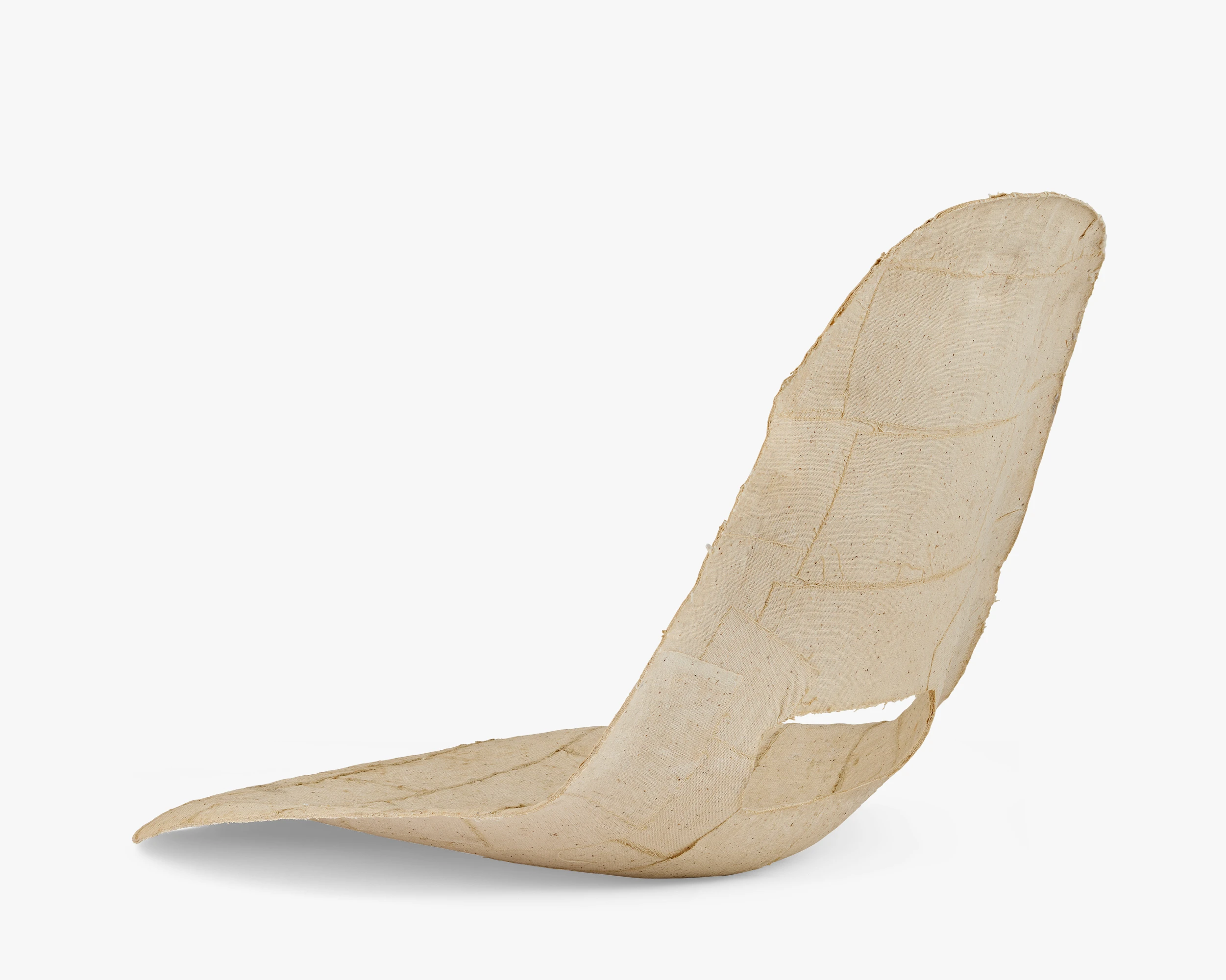 Ray and Charles Eames preferred to work hands-on, prototyping directly with materials. They built small mock-ups and full-size models, like the one here, as a way to test ideas in real time. Made with a gauzy textile that held its shape as it dried, this early model was an exploration of form. By observing what materials could and couldn’t do, the Eameses let their designs come from their learning—each solution informing the next.