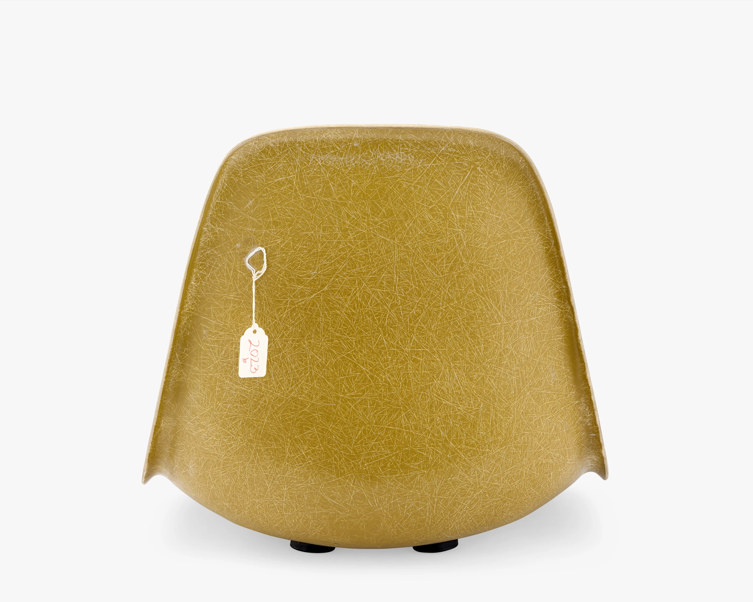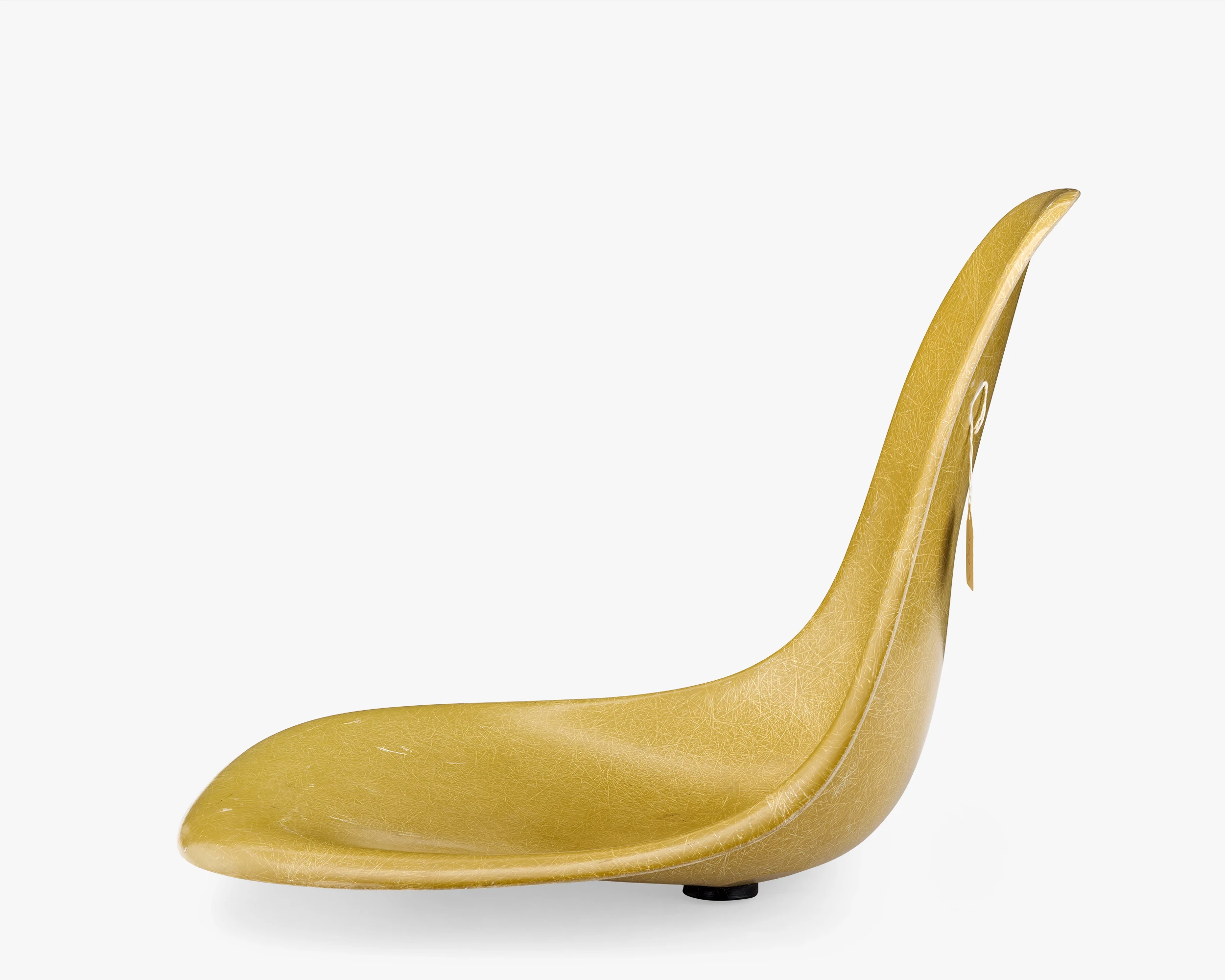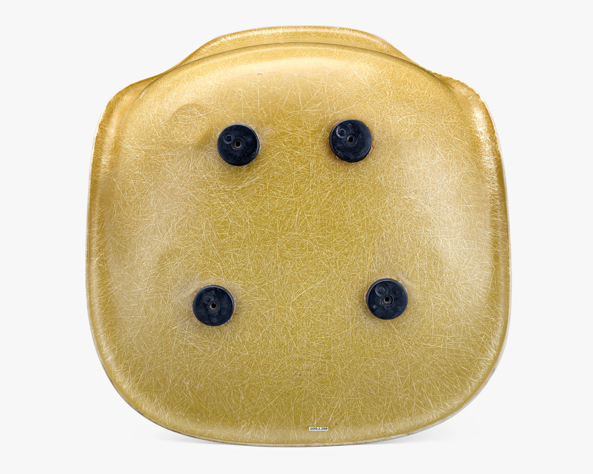 The collection has several color-test samples from different fiberglass manufacturers. This test sample for the color Yellow Dark has its original shockmounts.