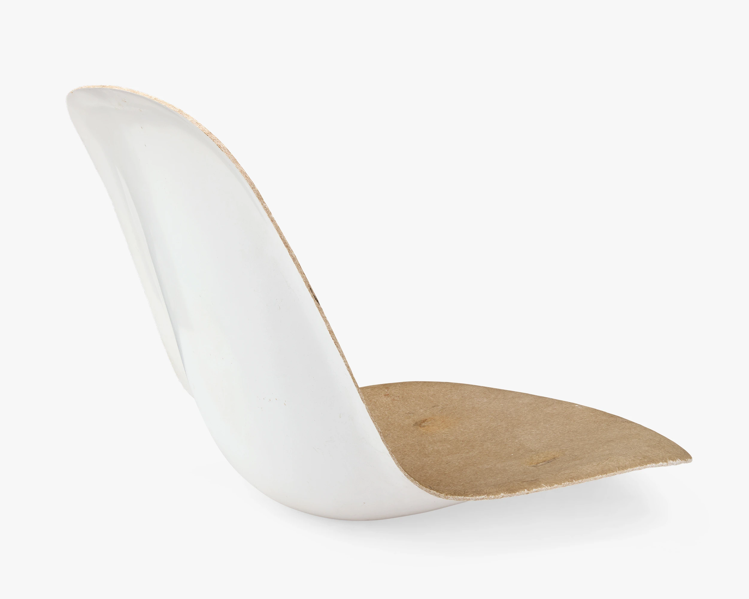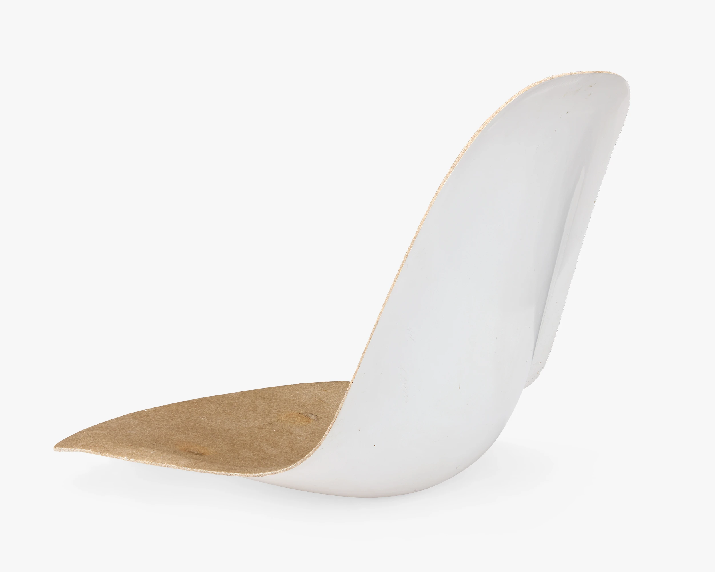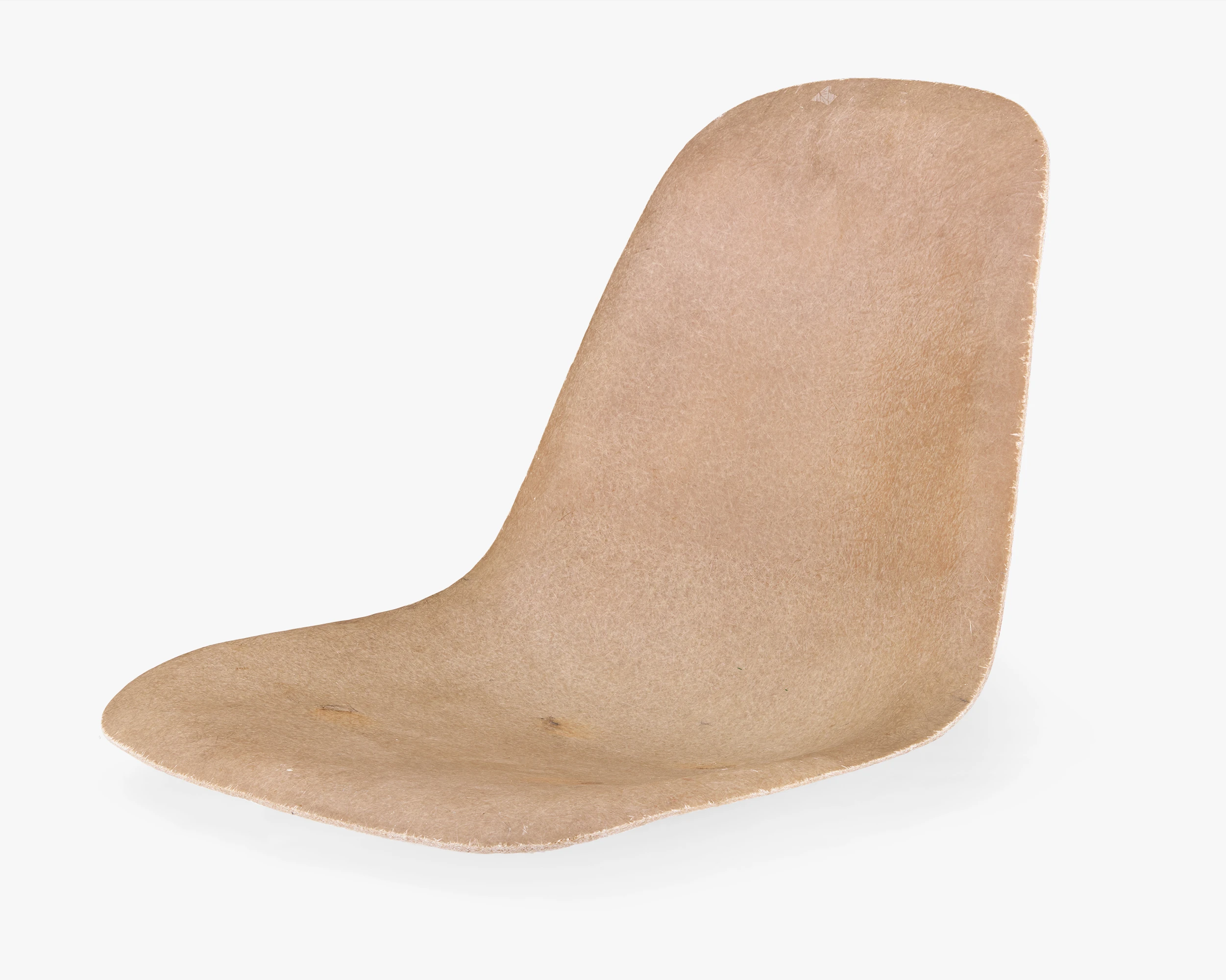 The smooth surface on the front and the rough surface on the back indicates that this shell was made by hand. Rather than sketch ideas for a chair, Ray and Charles liked to be very hands-on and work with the material directly to iterate. As a result, there are very few sketches of chairs from this time.