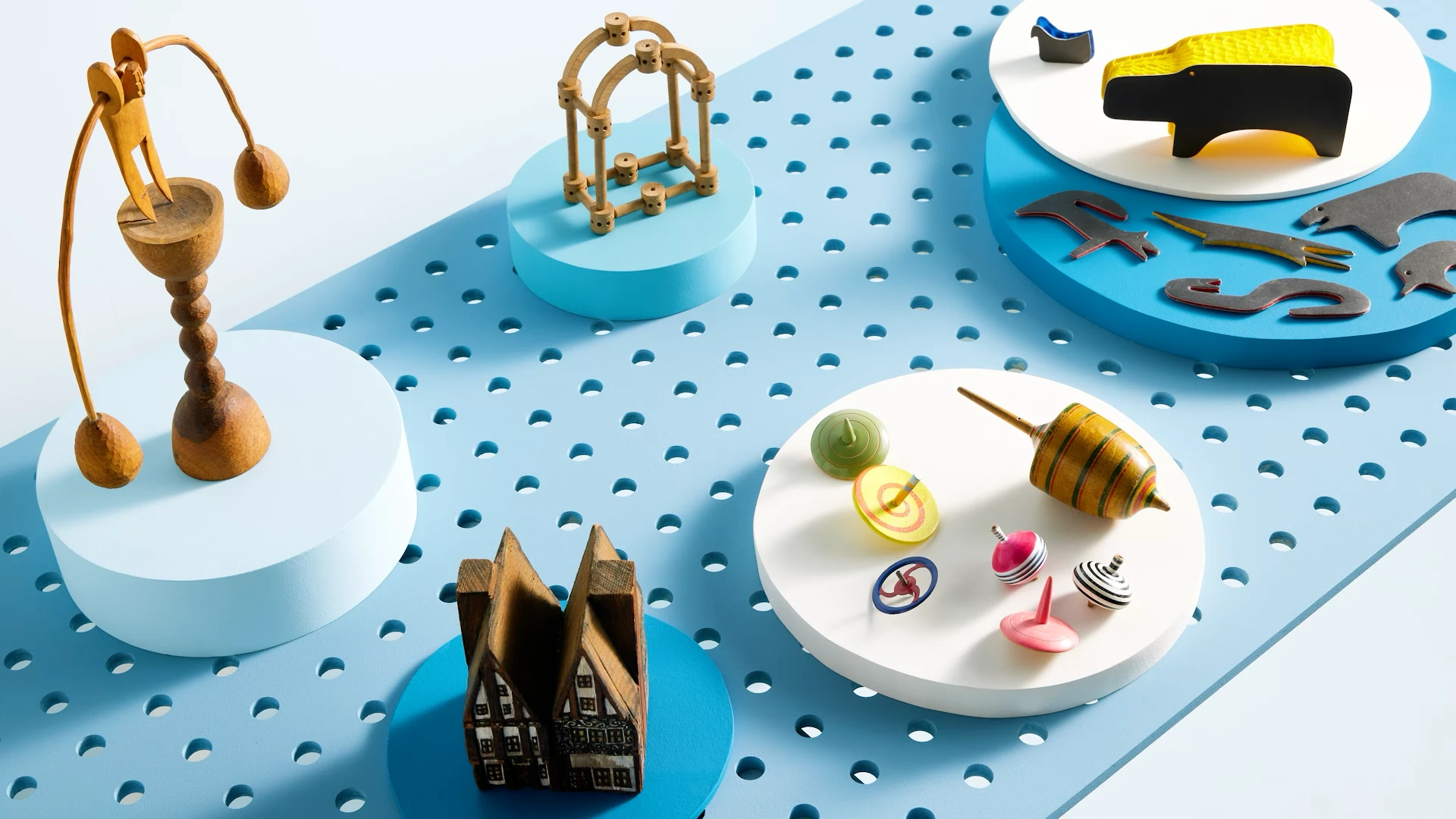 Toys are, generically speaking, the tools that facilitate play, and each toy offers an intrinsic link to the actions (and reactions) it inspires or generates. Through play humans begin to satisfy curiosities, acquire knowledge, and build skills—to become, as McCoy says, informed. It’s no surprise then, given how much of their work was dedicated to sharing and building knowledge (often in unprecedented, counterintuitive ways) that the Eameses loved toys, and the play they inspired, with such fervor. It’s telling that when faced with a novel technology like solar power, the designers deduced that a toy (in the form of the Solar Do-Nothing Machine) would be the optimal way to convey its potential.