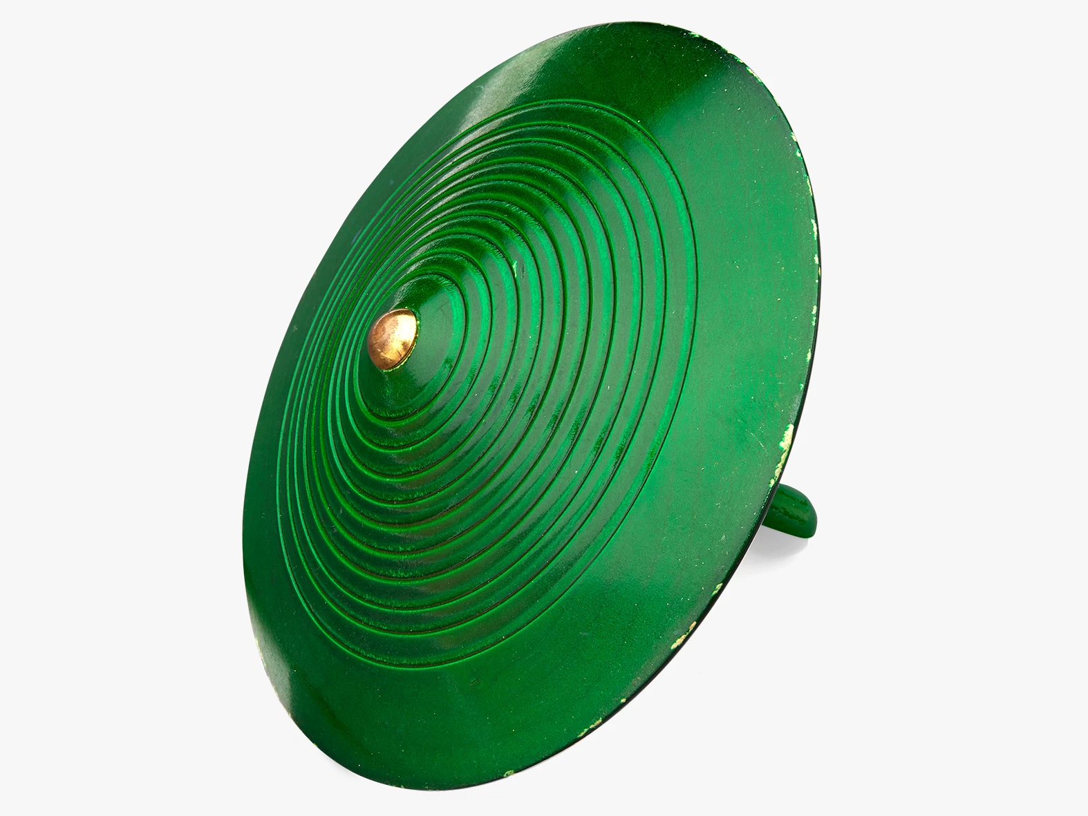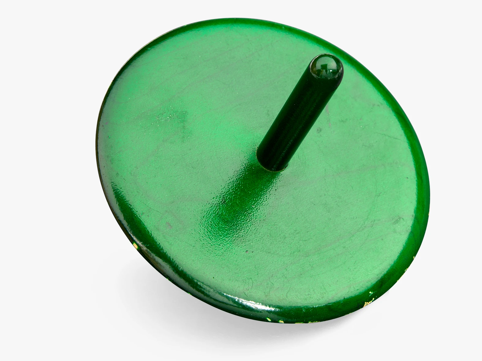 In the late 1970s, physicist Philip Morrison recorded the narration for one of the best-known Eames films, Powers of Ten, which zoomed out from a picnicking couple all the way to the edges of the universe. But Morrison found that the earlier Eames film, Tops, was actually more effective in helping him envision celestial bodies, explaining that, “because it intimately shows real tops, so carefully set spinning, so diversely searched out, it can stand in my world for something it cannot show at all: the unseen enormous tops of the stars, pulsars and quasars far in space.” With this in mind, shots like the one in which small wooden tops similar to this one spin amongst a cluster of several others of the same design begins to look like a galaxy of stars. The tops, which come from Switzerland, are each painted in a different rich tone—teal, yellow, orange, and burgundy—and offer an impressive display when seen together.