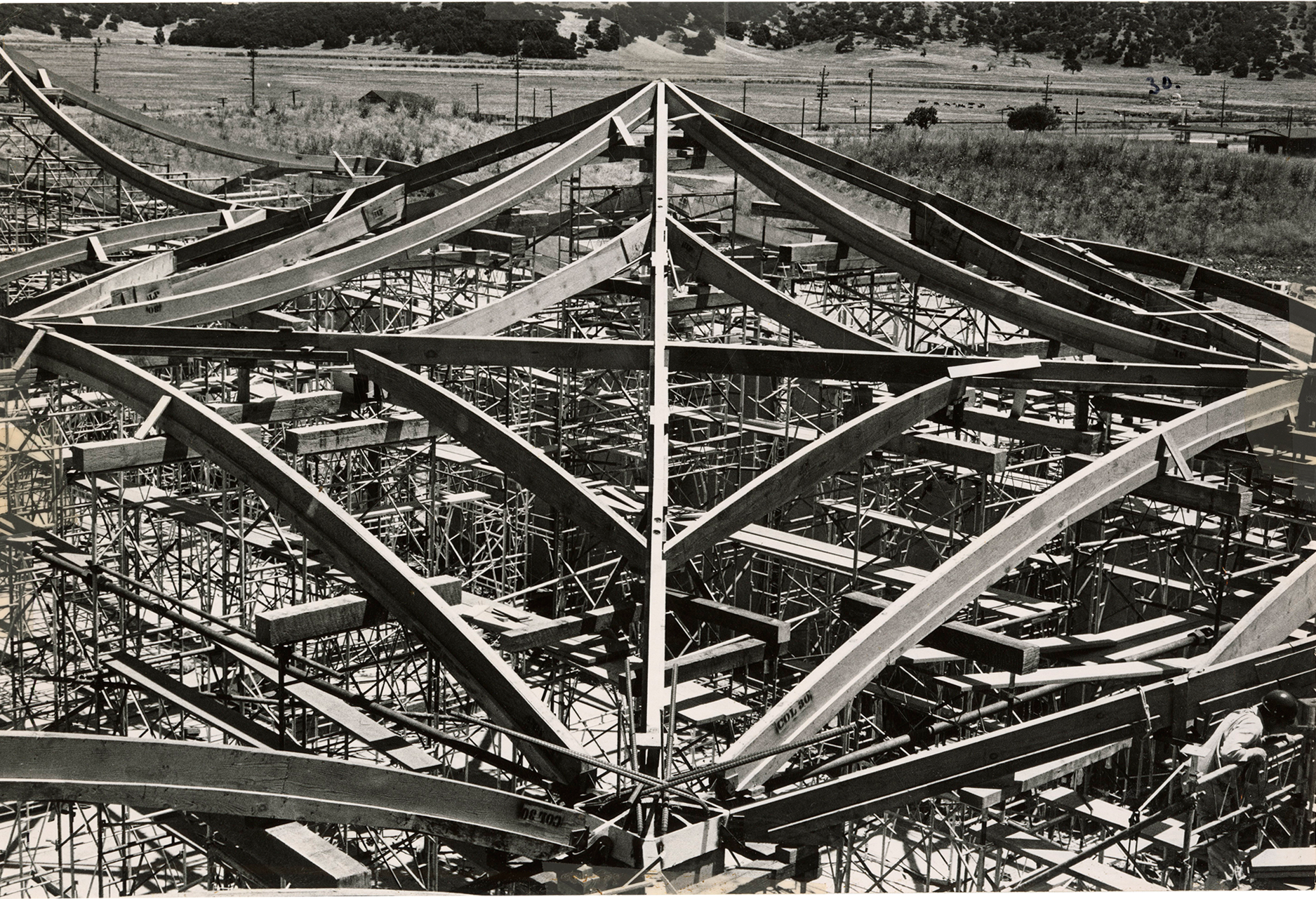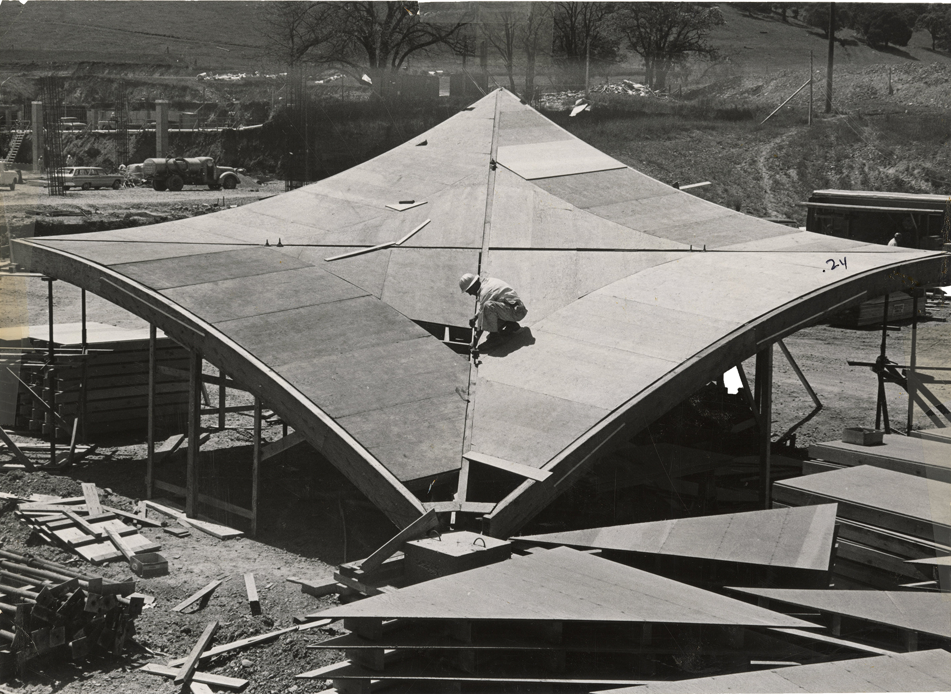 Hyperbolic paraboloid roof segment formwork taking shape during construction. Artifact # A.2025.3.009