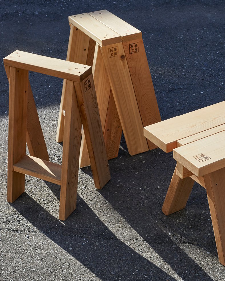 Ishinomaki Lab’s AA Stool and Bench are designed to be made with simple hardware store materials and tools. Photograph: Monster Smith/Hirotsugu Hoshikawa