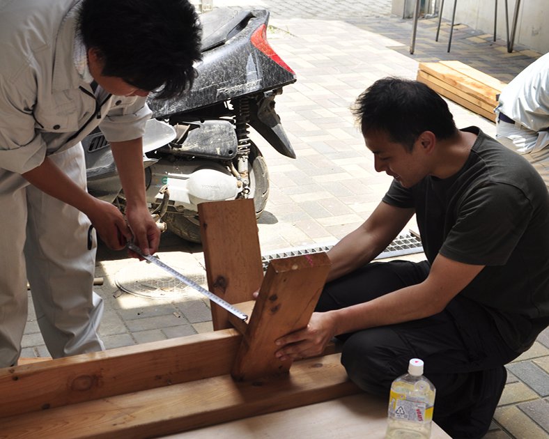 Ishinomaki Lab founder Keiji Ashizawa (right) initiated bench-making workshops to help heal the community after the earthquake and tsunami.