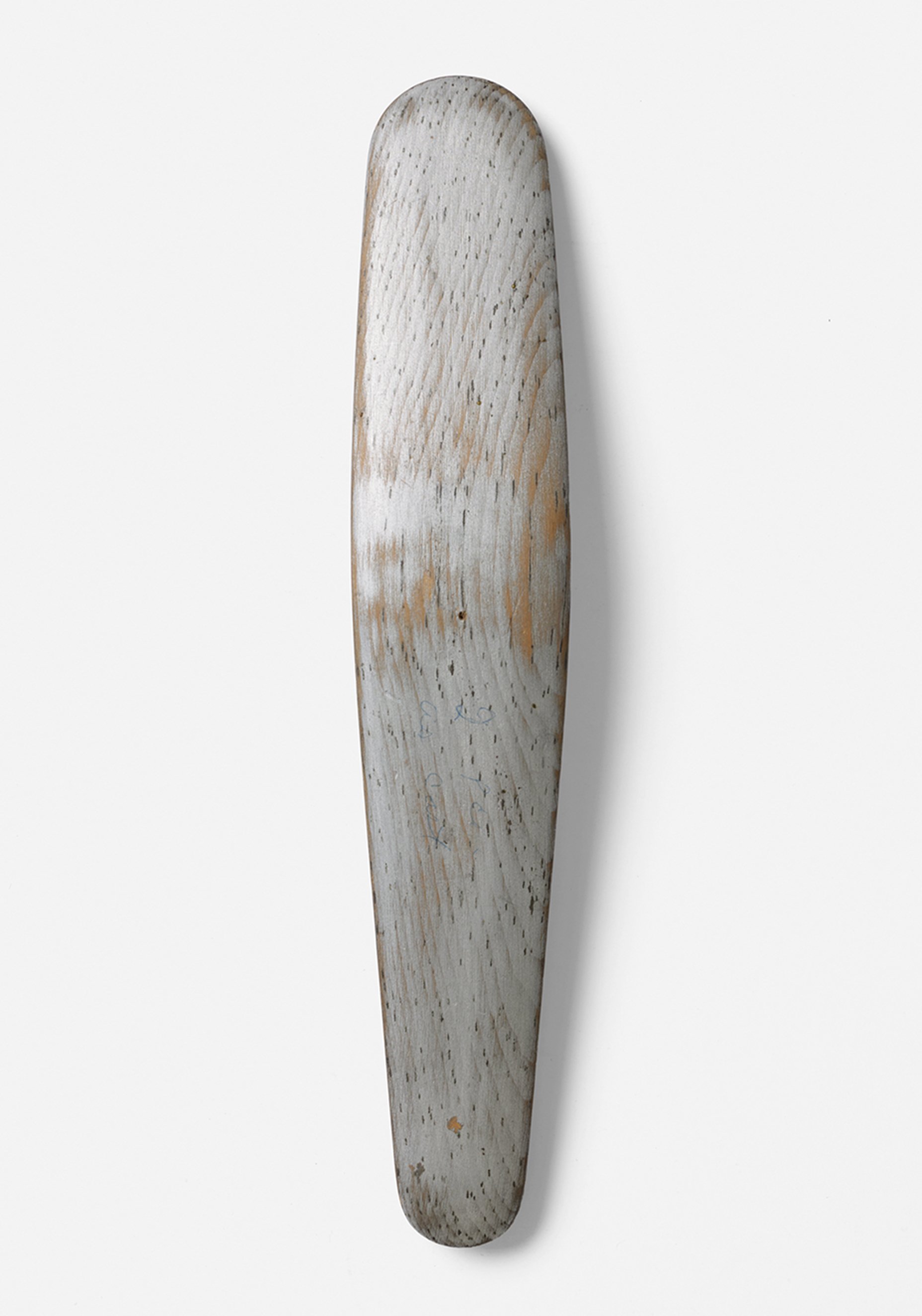 A second object in the collection shifts the focus from the chair as a whole to one specific part: a carved and painted wooden model for one of the aluminum back supports. Before that support could be cast, its shape had to be determined. This small object makes that stage visible. It points to something Charles often returned to: design includes not just the form of a thing but also how it can be made. As he put it, “When a product is designed in a way that its production varies from the norm…it becomes the responsibility of the designer to help make the necessary transition…”